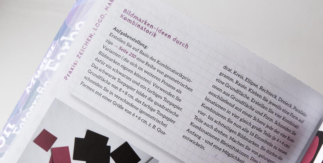 Das Buch aus dem Schweizer Haupt Verlag bietet theoretische Grundlagen sowie eine Sammlung von 50 praktischen Anwendungsaufgaben zu Bereichen wie Gestaltung, Grafikdesign und Visuelle Kommunikation. Die Übungen sollen das Auge und gleichzeitig die manuellen Fertigkeiten schulen.