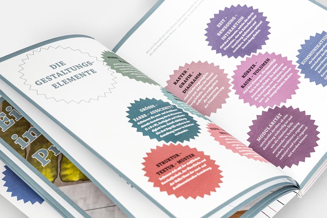 Die fast 40 Übungen sollen dazu anregen, sich schnellstmöglich praktisch selbst zu erfahren. Kapitel für Kapitel werden verschiedene Gestaltungselemente wie beispielsweise Punkt, Linie, Fläche, Rhythmus, Balance, Größe, Struktur, Raster etc. auf kreative Art und Weise nähergebracht.