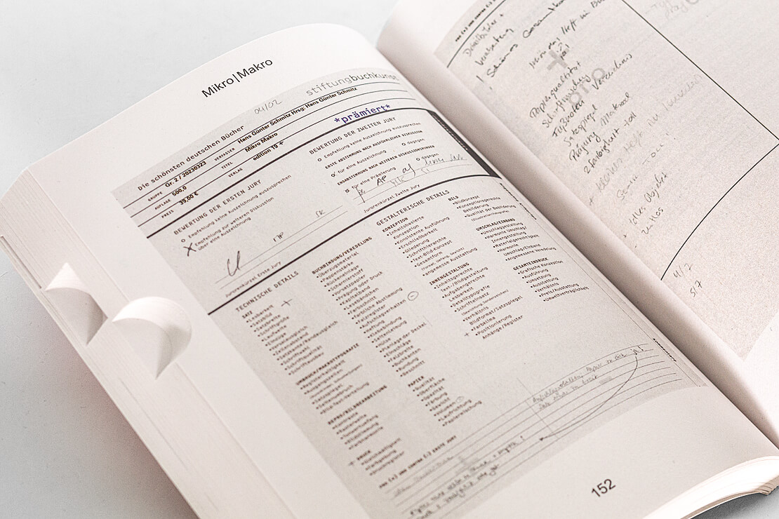 Die Stiftung Buchkunst stellt auf eine ungewöhnliche und kreative Weise die prämierten Bücher aus 2023 vor. Jede der gezeigten Publikationen ist von allen Seiten abgelichtet. Außerdem haben es die ausgefüllten Bewertungsformulare samt handschriftlicher Kommentare der Jurys mit in den Katalog geschafft.