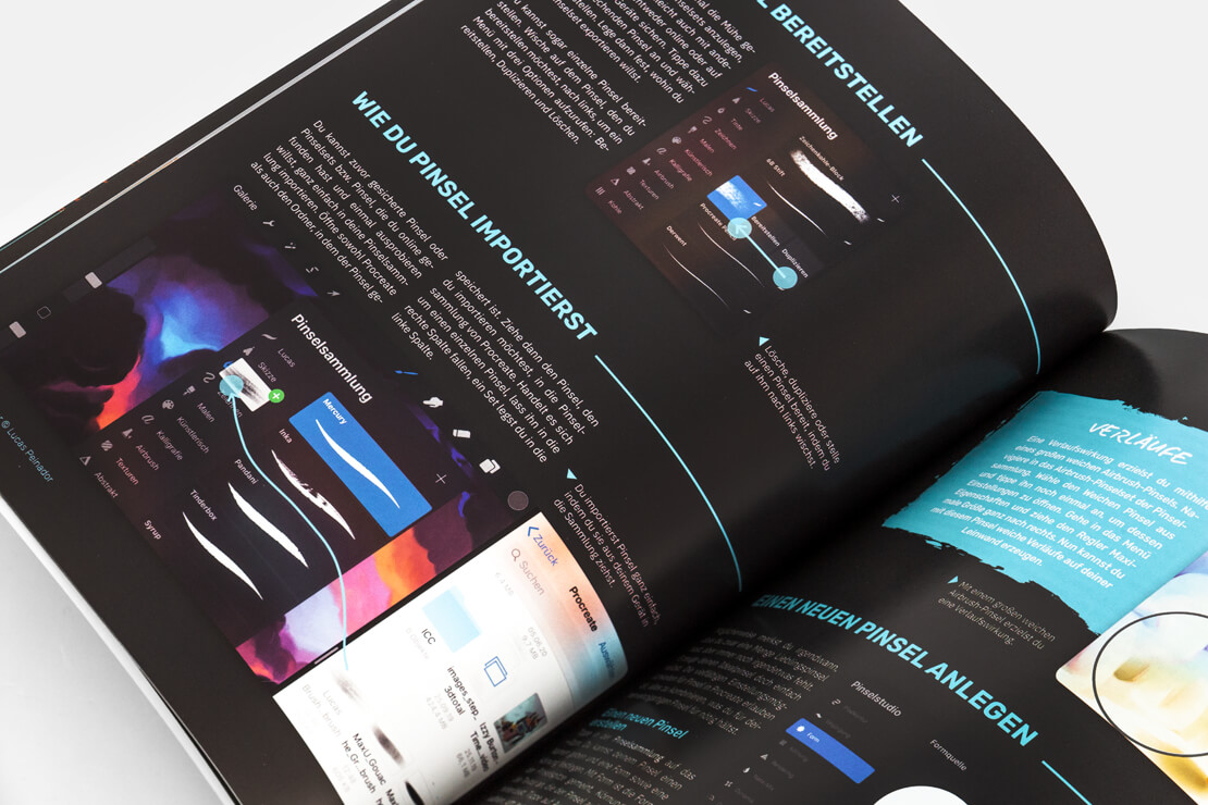 Während der erste Teil des Buches die wichtigsten Procreate-Funktionen fürs digitale Malen erklärt und dabei beispielsweise auf Ebenen und Effekt eingeht, geht es im zweiten Bereich direkt an die kreative Umsetzung.