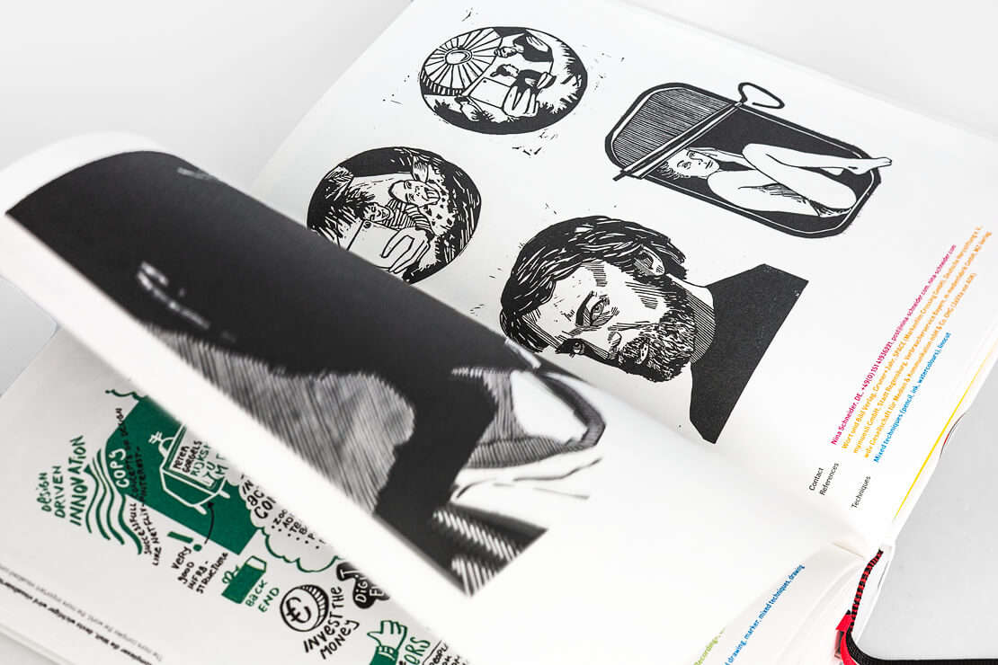 Vorgestellt wird die kreative Bandbreite von Tusche-Zeichnungen, Sketchnotes, Bleistift-Illustrationen bis hin zu Scribbles, Collagen, Lineart, Vektorarbeiten und mehr. Enthalten sind über 600 großformatige Abbildungen, die zudem auch als Inspiration dienen und die eigene Kreativität anregen können.