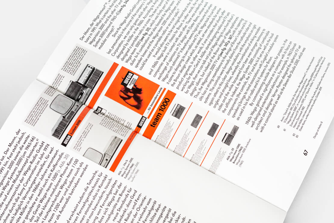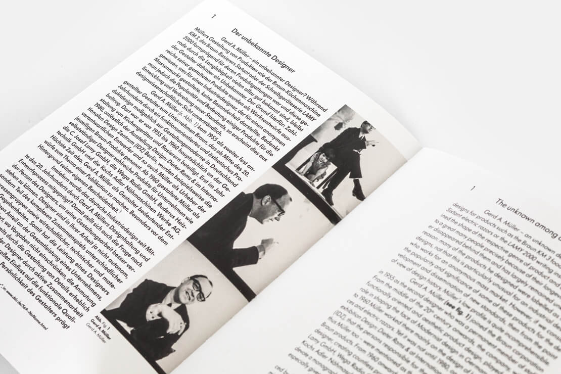 Außerdem wird auf die Designhaltung und den Entwurfsprozess von Gerd A. Müller eingegangen und unter anderem der Einfluss des Kreativen auf das deutsche Industriedesign erörtert. Ergänzend dazu findet man Wissenswertes über Herkunft, Ausbildung und Studium des Frankfurter Designers und seine Tätigkeit als Formgestalter bei Braun.