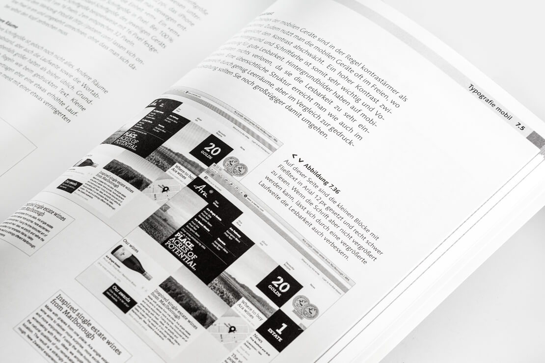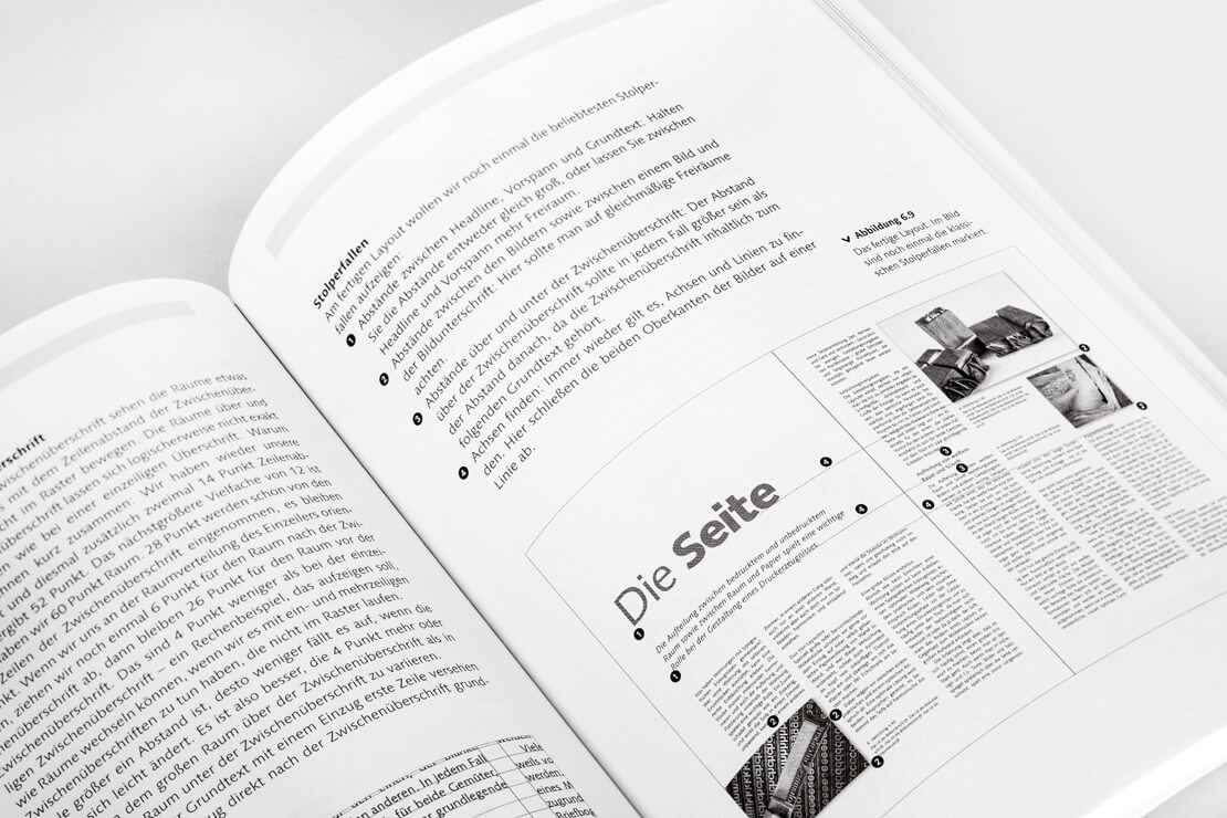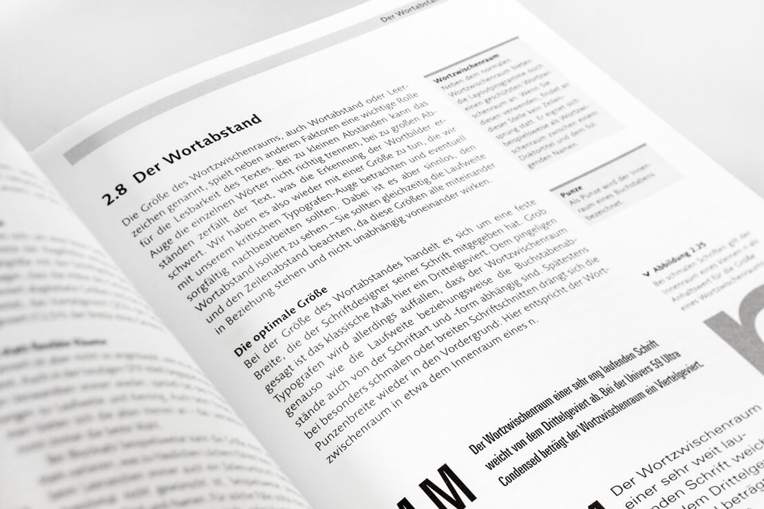 Was sich alles mit Buchstaben anstellen lässt, wird in einem eigenen, ausführlichen Kapitel beschrieben. Dort geht es beispielsweise um Serifen, Ligaturen, Wortabstände, Zeichenabstände und mehr.