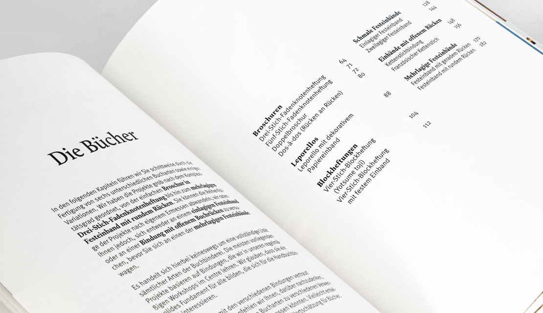 Der Schwerpunkt des Buches liegt auf der Fertigung von Büchern. Wer sich also immer schon einmal fragte, wie sich Leporellos, Broschuren, Festeinbände und Co. in Kleinstauflage selbst herstellen lassen, findet in »Handgebunden« die passenden Anleitungen.