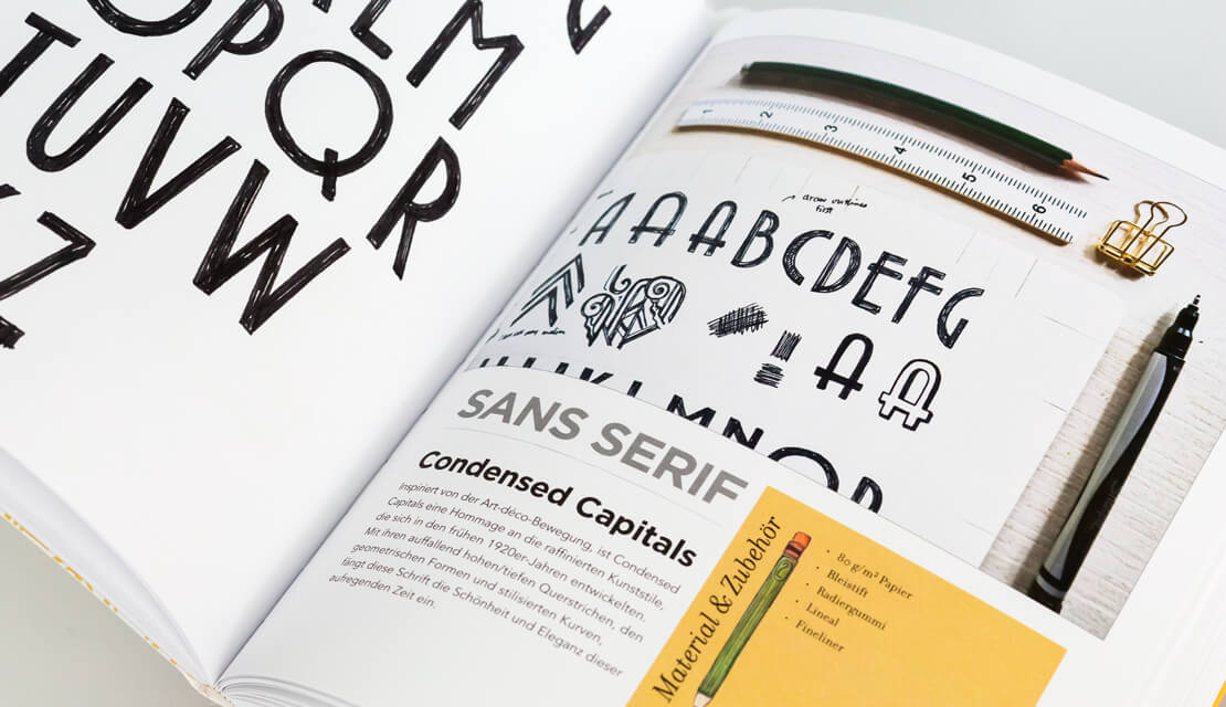Der Band aus dem Stiebner Verlag zeigt das Handwerkszeug und die Techniken, um Handlettering zu erlernen. Die nötigen Arbeitsschritte werden schrittweise erläutert und mit Fotografien begleitet, um sich dem Zeichnen von Buchstaben mit Serifen, serifenlosen Lettern und Schreibschriften anzunähern.