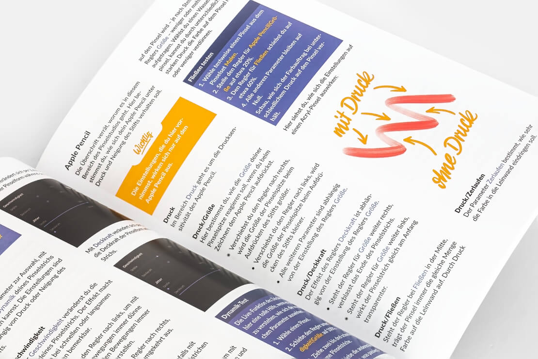 Im ersten Teil des Buches werden die Basics von Procreate erklärt. Neben einfachen Grundfunktionen, Wissenswertes zur Gestensteuerung und den Ebenen-Funktionen geht es zudem auch um das Erstellen von eigenen Pinseln, die sich für das Handlettering nutzen lassen.