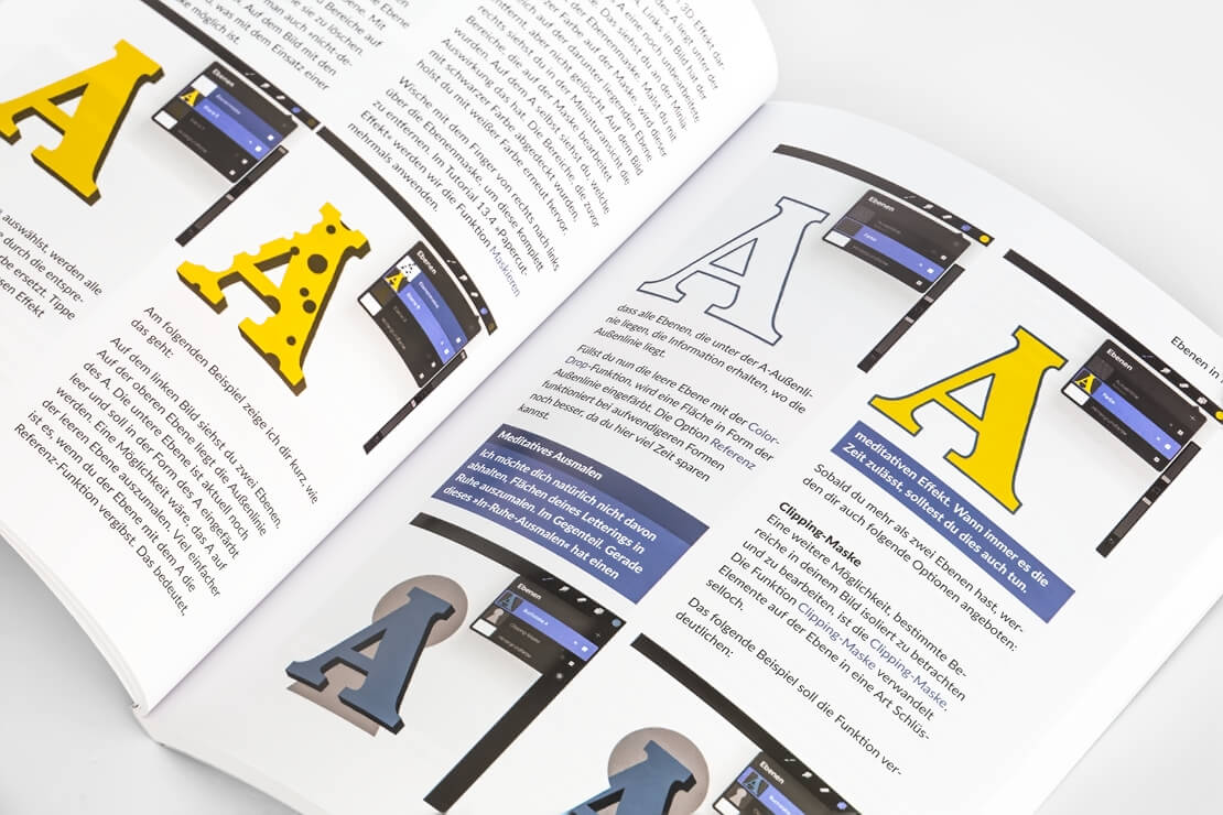 Pavo „djangonaut“ Ivković widmet sich in diesem Buch speziell den Funktionen für das digitale Handlettering. Der Kölner Illustrator zeigt in ausführlichen Schritt-für-Schritt-Anleitungen, wie man beispielsweise Buchstaben verzieren, mit Wasserfarben arbeiten oder Schatteneffekte erzielen kann.
