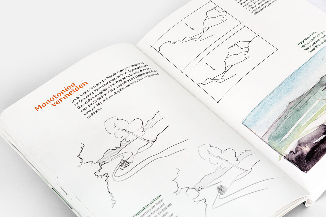 Dem Alltagsstress entfliehen und zu neuer Kreativität gelangen: Tilo Schneider ermutigt in seinem neuen Buch, das im Verlag Hermann Schmidt erschienen ist, mit wachem Blick ins Freie zu gehen und Landschaft, Wind und Wetter ins Skizzenbuch zu lassen.