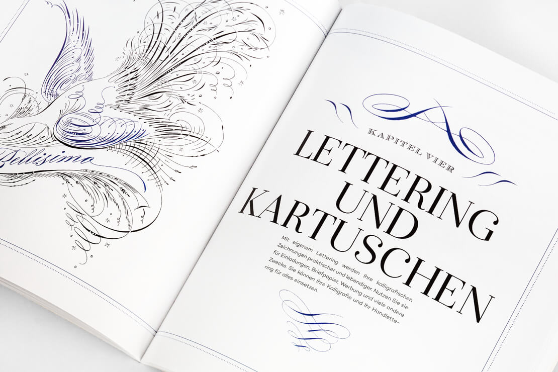 Die Publikation ist im Stieber Verlag herausgekommen. Es handelt sich dabei um die deutschsprachige Ausgabe von »Calligraphic Drawing«, die seinerzeit bei Rockport Publishers erschienen ist. Der Umfang beträgt 128 Seiten. Für 19,90 Euro ist die schlanke Fibel im Handel verfügbar.