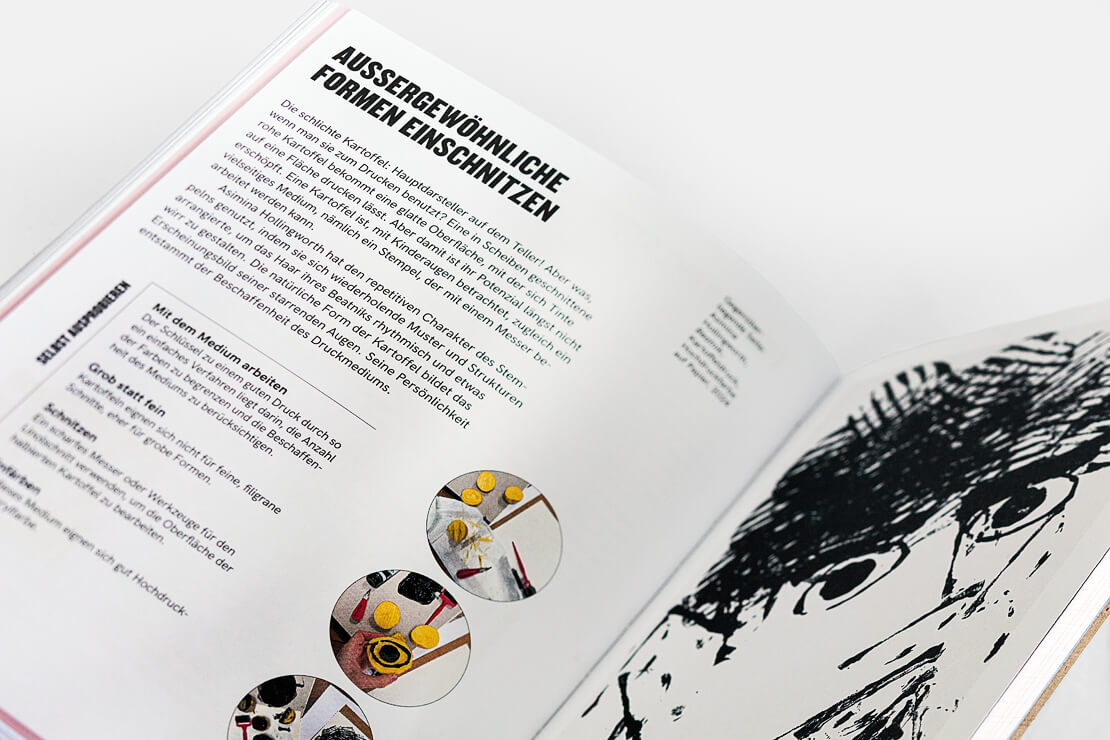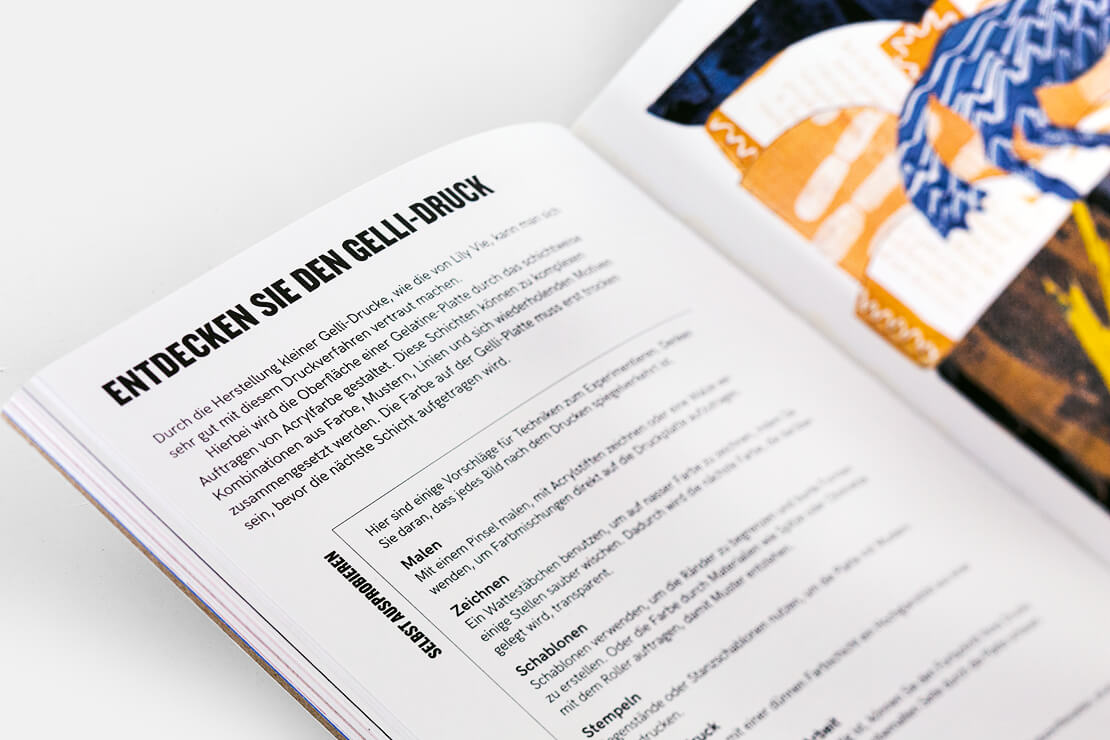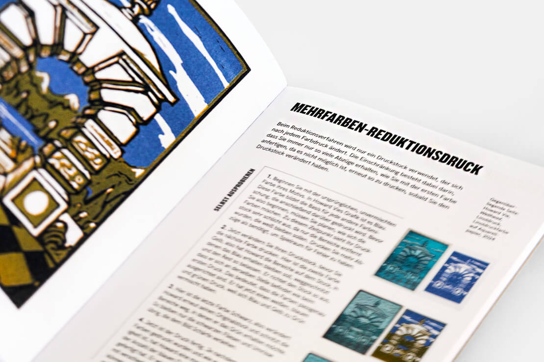 Ergänzt werden die Anleitungen durch inspirierende Beispiele aus der zeitgenössischen Druckgrafik. Gezeigt werden u.a. Werke von Saul Steinberg, Tracy Simpson und Delita Martin, die zeigen, wie vielfältig sich Druckgrafik interpretieren lässt – sowohl künstlerisch, spielerisch als auch erzählerisch.