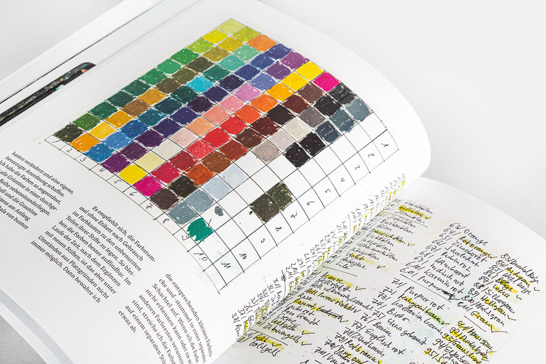 Im ersten Teil des Buchs wird unter anderem anhand von Farbtabellen das Mischen und Kombinieren von Farben erklärt. Außerdem gibt der Künstler Tipps zum Lagern und Präsentieren der fertigen Gemälde.