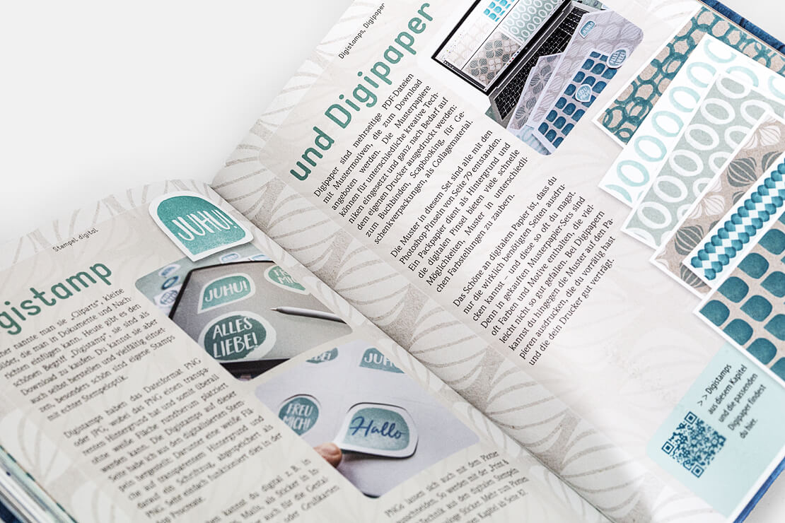 Michaela Müllers Buch zeigt, dass digitale und analoge Welten keine Gegensätze sein müssen. Über individuelle Gestaltungen mit Schere, Pinsel, Tablet, Schablonen, Fotos, Scanner und Co.