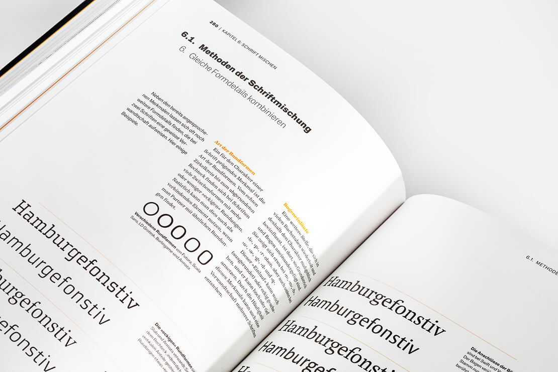 Auch verschiedene Methoden der Schriftmischung kommen nicht zu kurz. Erklärt wird beispielsweise, wie sich ähnliche Proportionen, Balkenenden oder Formdetails kombinieren lassen und wie es schließlich mit der Schriftmischung in der Anwendung funktionieren kann.