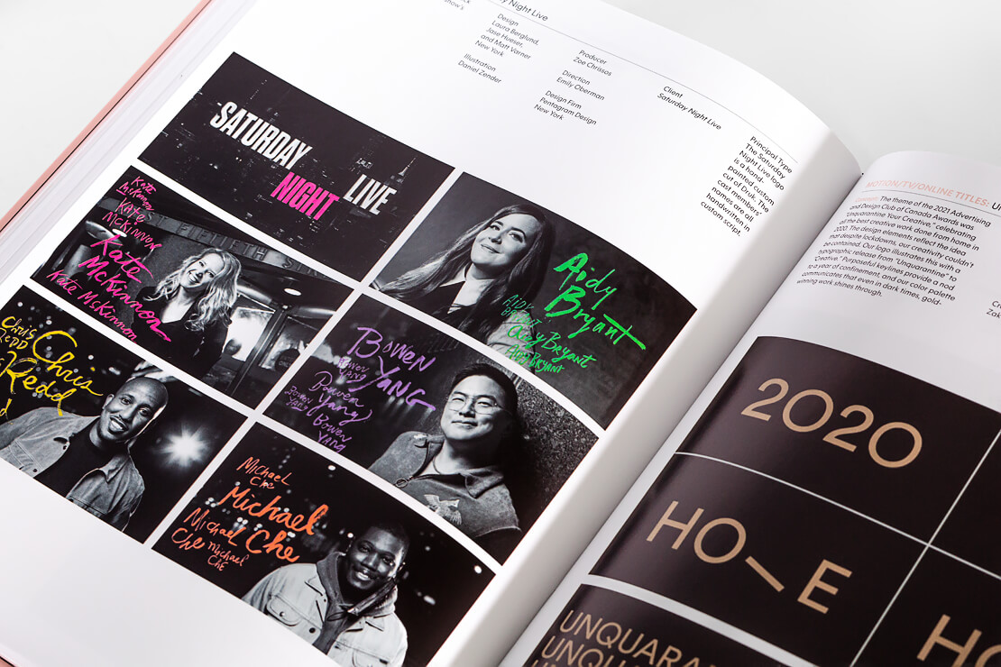 Die Gestaltung des Buchs wurde dieses Jahr in die Hände von Juan Carlos Pagan (Sunday Afternoon) gelegt. Der Kreative gestaltete einen pinkfarbenen Umschlag mit Hoch- und Tiefprägung sowie Glanzlack-Veredelung. Das Farbkonzept zieht sich durch die komplette Publikation.