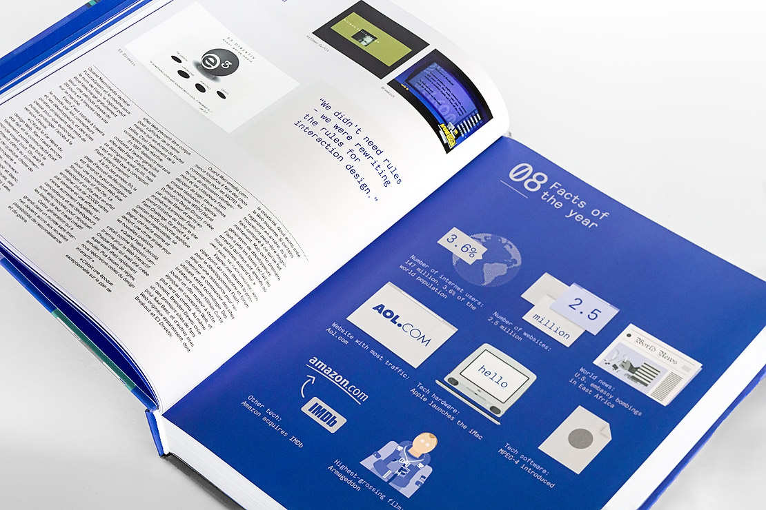 Das Buch aus dem Verlag TASCHEN bietet einen visuellen Ausflug in die Geschichte des Webdesigns. Es stellt über 200 Websites von 1990 bis heute vor und zeigt die Highlights und Geschehnisse aus den jeweiligen Jahren. Eine Bildchronik in Deutsch, Englisch und Französisch.
