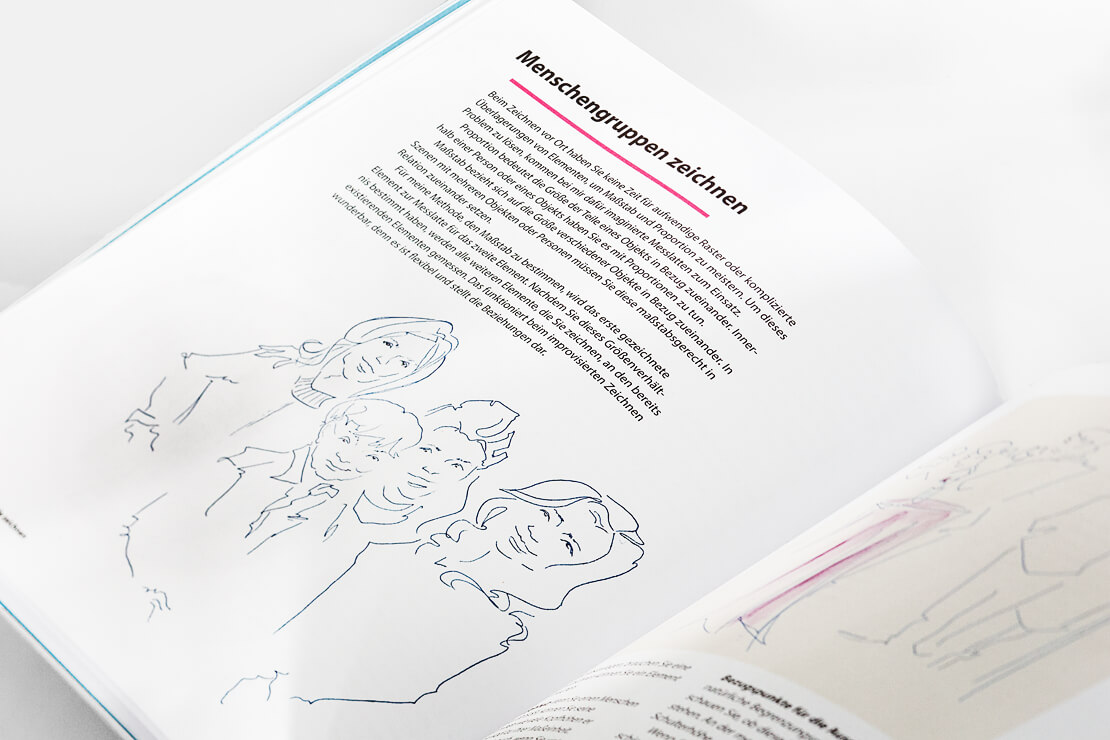 Erläutert wird beispielsweise, wie man die Körpersprache von Menschen einfängt, lebendige Gesichter zeichnet, Tiere darstellt oder Gegenstände des Alltags festhält. Worauf es dabei jeweils ankommt und welche Besonderheiten zu berücksichtigen sind, wird in entsprechenden Einzelschritten dargestellt.