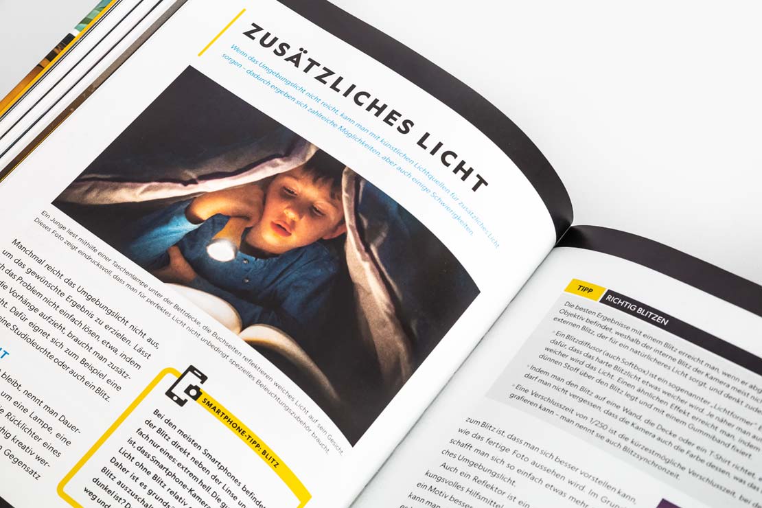 Da ein Smartphone keine DSLR-Kamera ersetzen kann, gibt es zudem bei vielen der gezeigten Techniken zusätzliche Infokästen. In diesen wird erläutert, wie sich die Methoden dennoch mit ansprechenden Ergebnissen mithilfe mobiler Geräte umsetzen lassen.