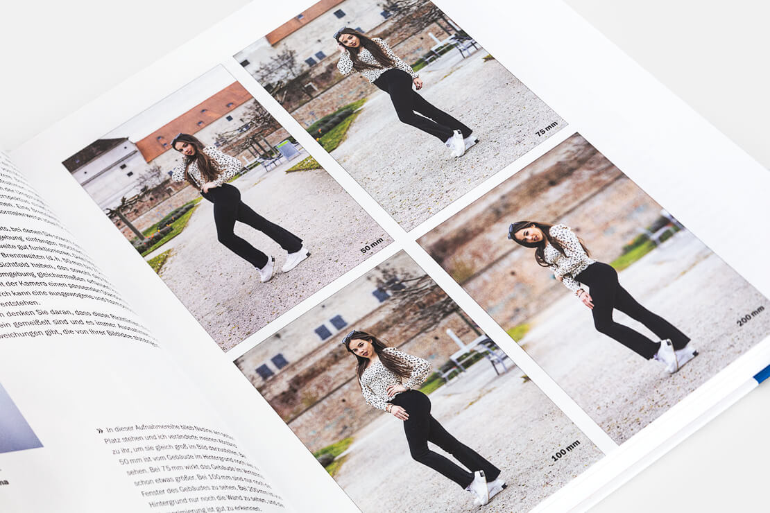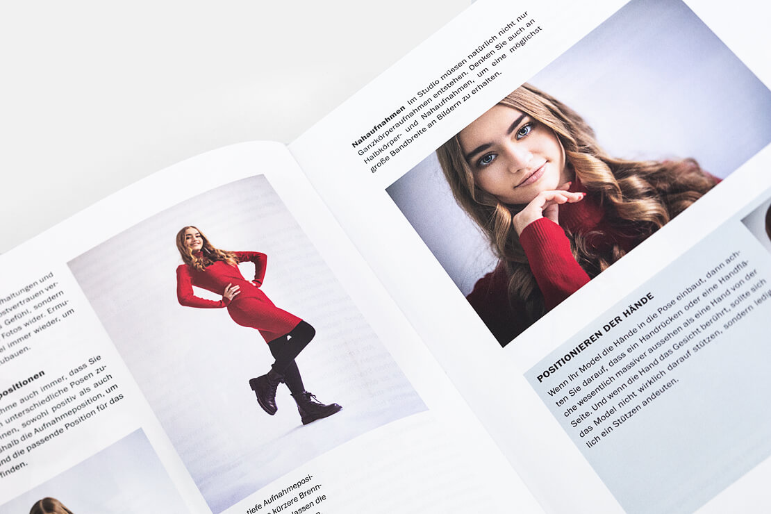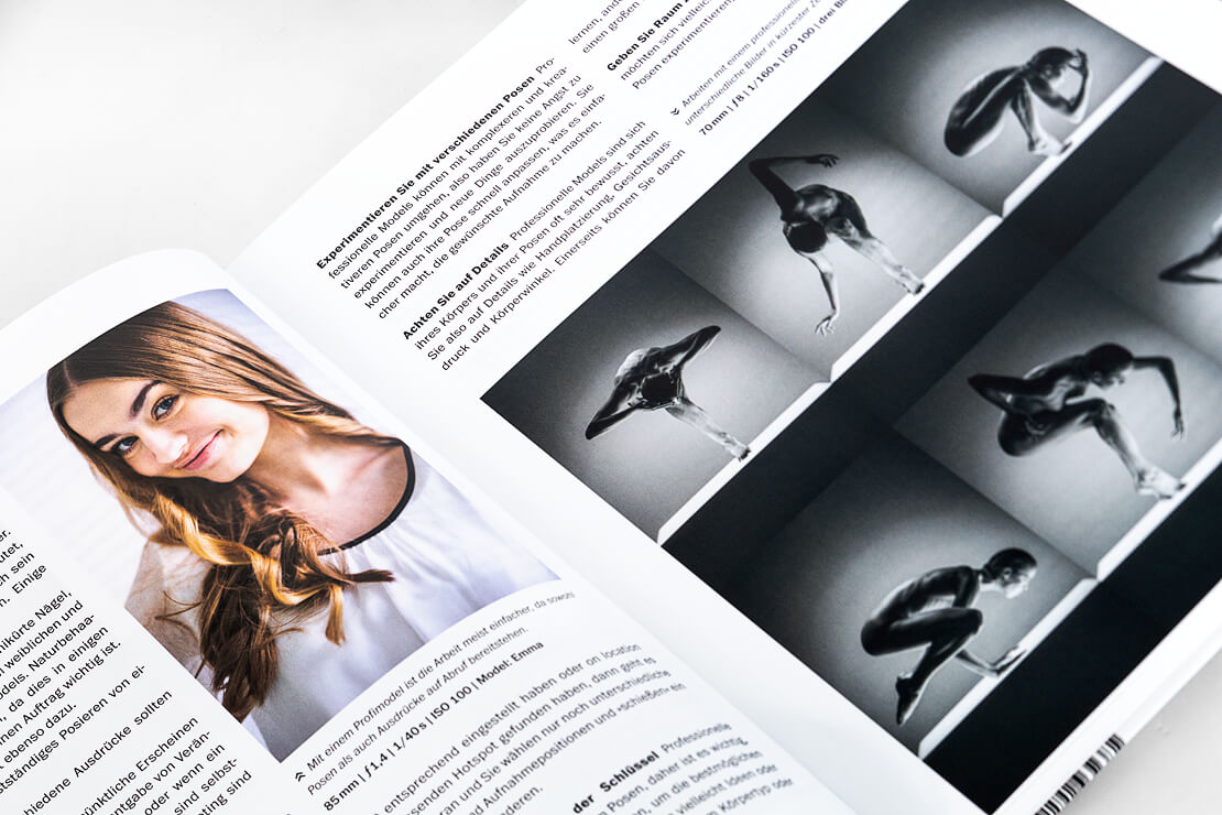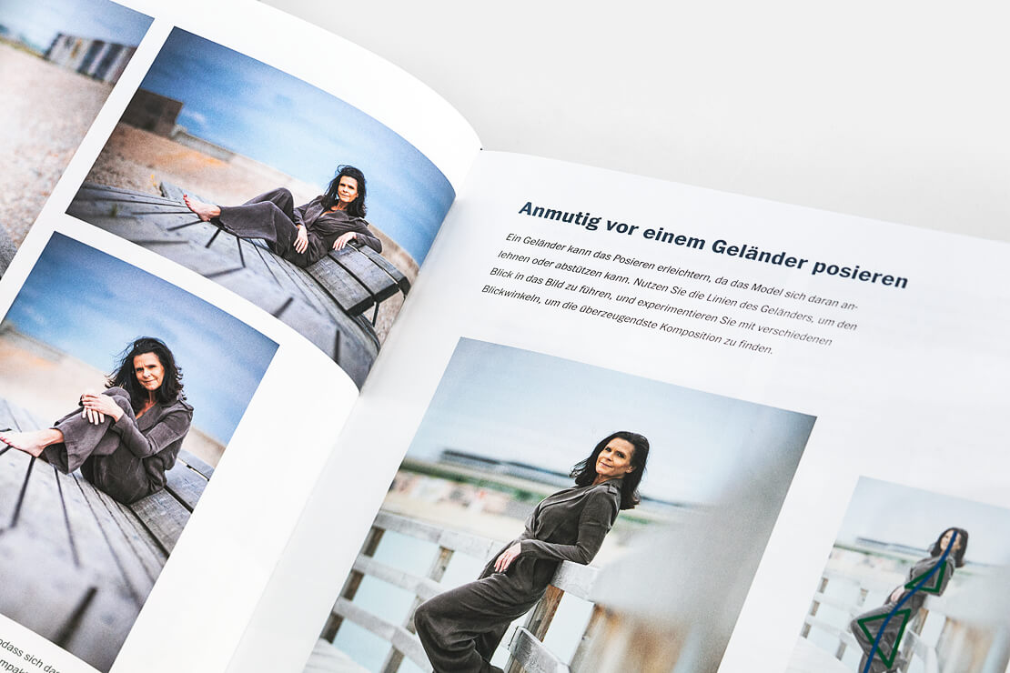 Praktischerweise ist auch jeweils bei den Posing-Ideen mit eingezeichnet, auf was bei den Körperhaltungen der Models zu achten ist und mit welchen Tipps, Ermutigungen oder Formulierungen man den oder die Fotografierte gezielt durch das Shooting leiten kann. So wird es dann für beide Seiten verständlicher und einfacher.