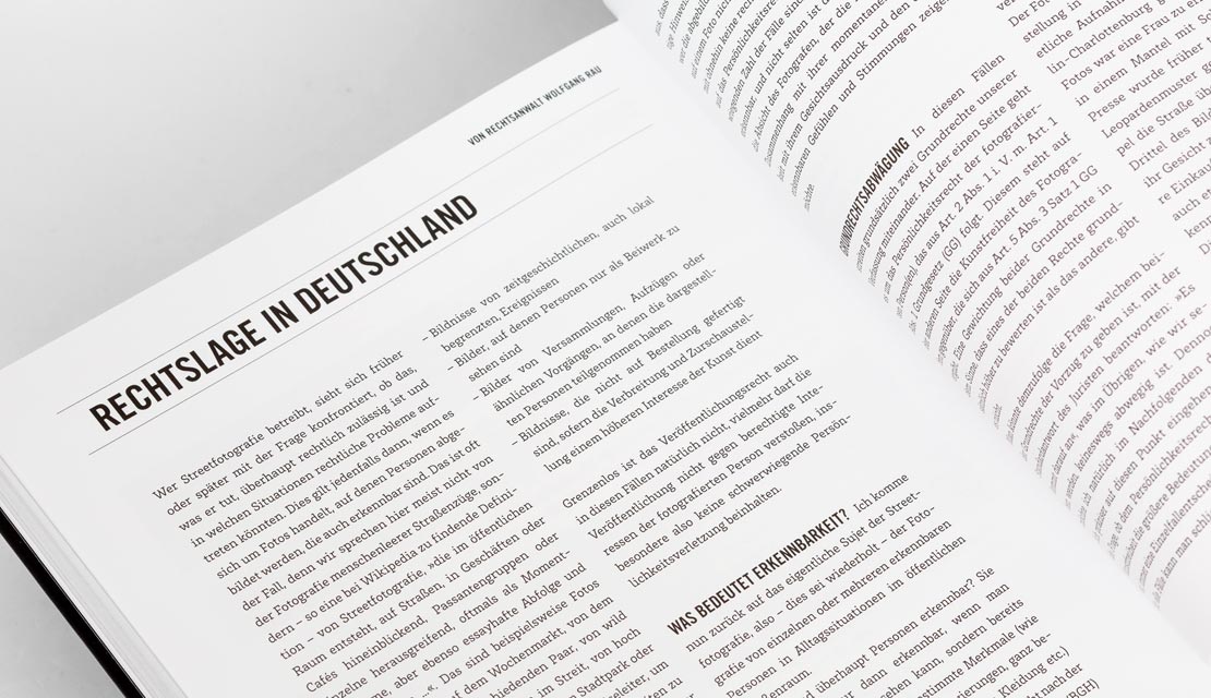 »Streetfotografie – made in Germany« richtet sich an Fotobegeisterte, die Wert auf Ästhetik in Sachen Straßenfotografie legen. Das Buch kann dabei behilflich sein, auf neue Ideen zu kommen und somit Situationen und Momente auf der Straße besser abschätzen und festhalten zu können.