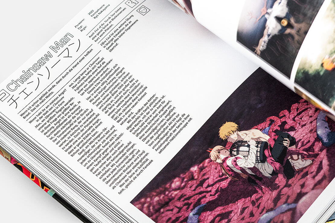 Zwischen die Werkporträts sind Spotlights auf prägende Regisseurinnen und Regisseure, Studios und Genres gesetzt – von Mecha und Cyberpunk bis Slice of Life. Diese Zwischenkapitel vertiefen die Einordnung, geben Einblicke in Produktionsweisen und zeigen unter anderem, wie bestimmte Handschriften das Medium nachhaltig beeinflusst haben. Kuratierte Empfehlungen und Querverweise erleichtern den Einstieg und laden dazu ein, thematische Schwerpunkte, Jahrzehnte oder Stilrichtungen gezielt zu erkunden.