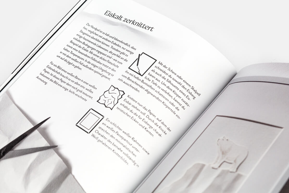 Im Mittelpunkt des Buches stehen einfache Mittel und praktische Ansätze. Die Autorin stellt verschiedene Papiersorten und Falttechniken vor und erklärt, wie sich diese in Szene setzen lassen. Die vorgestellten Projekte reichen vom Experimentieren mit dem Material bis hin zu inszenierten Papierobjekten – darunter Kaminbilder, „Knickboxen“ oder gefaltete Miniaturen.