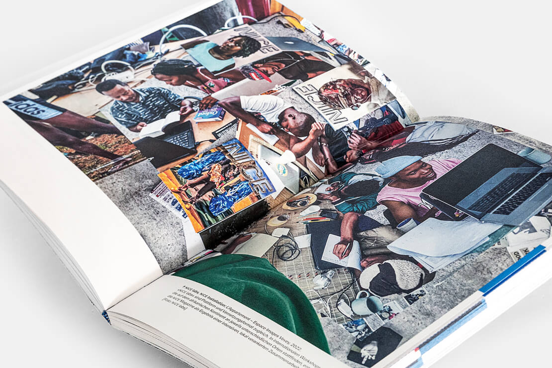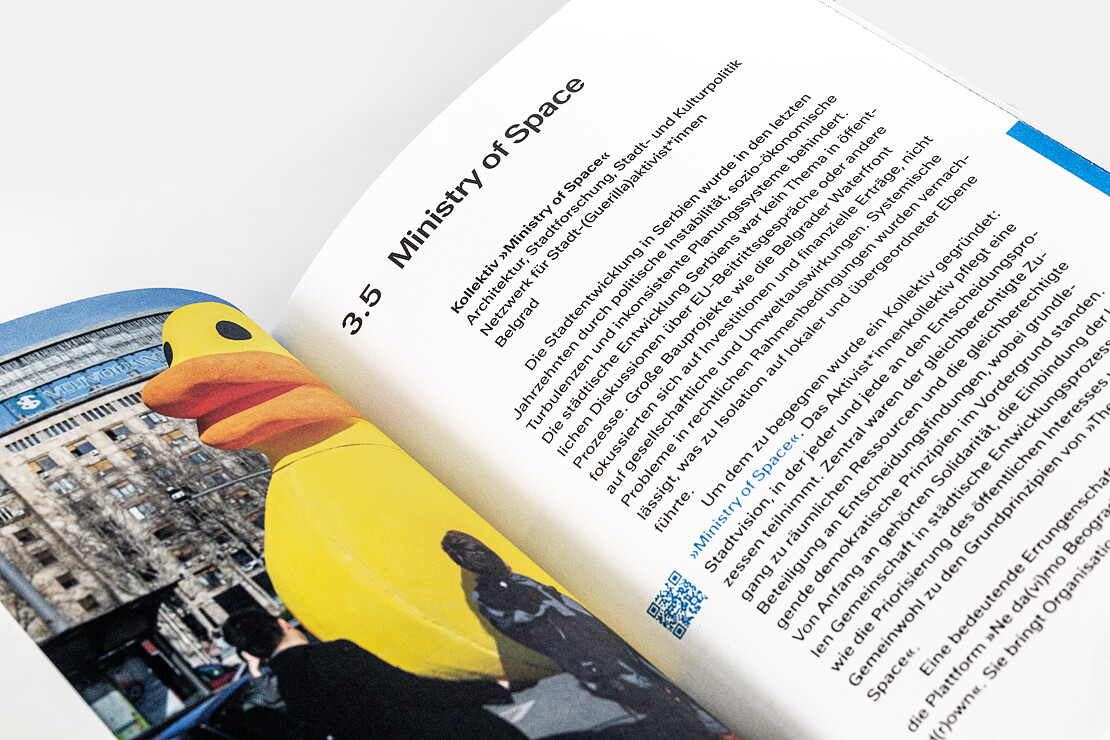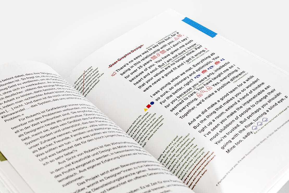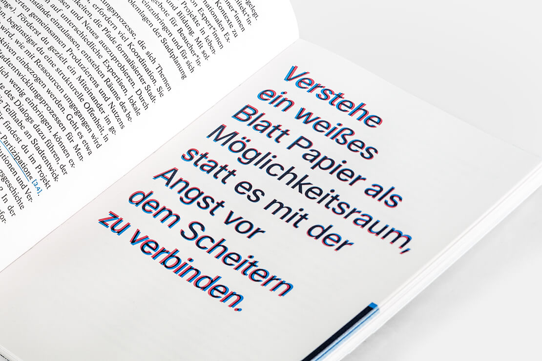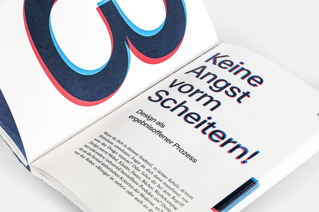 Nicht nur die Inhalte, auch die Gestaltung des Buches selbst spiegelt den Anspruch wider: Das Cover mit seiner auffälligen Passerdifferenz ist ein bewusst gewähltes gestalterisches Statement. Das Buch ist auf umweltfreundlichem Naturpapier gedruckt und in einer Schweizer Broschur gebunden.