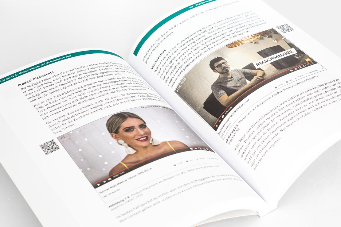 Dort wird das komplette Programm von Product-Placements, Werbevideos bis hin zu Testimonials, Channel-Takeovers etc. behandelt. Außerdem erfährt man Vorgehensweisen, um Agenturen und Unternehmen auf sich aufmerksam zu machen und bei Verträgen und Briefings einen klaren Kopf zu bewahren.