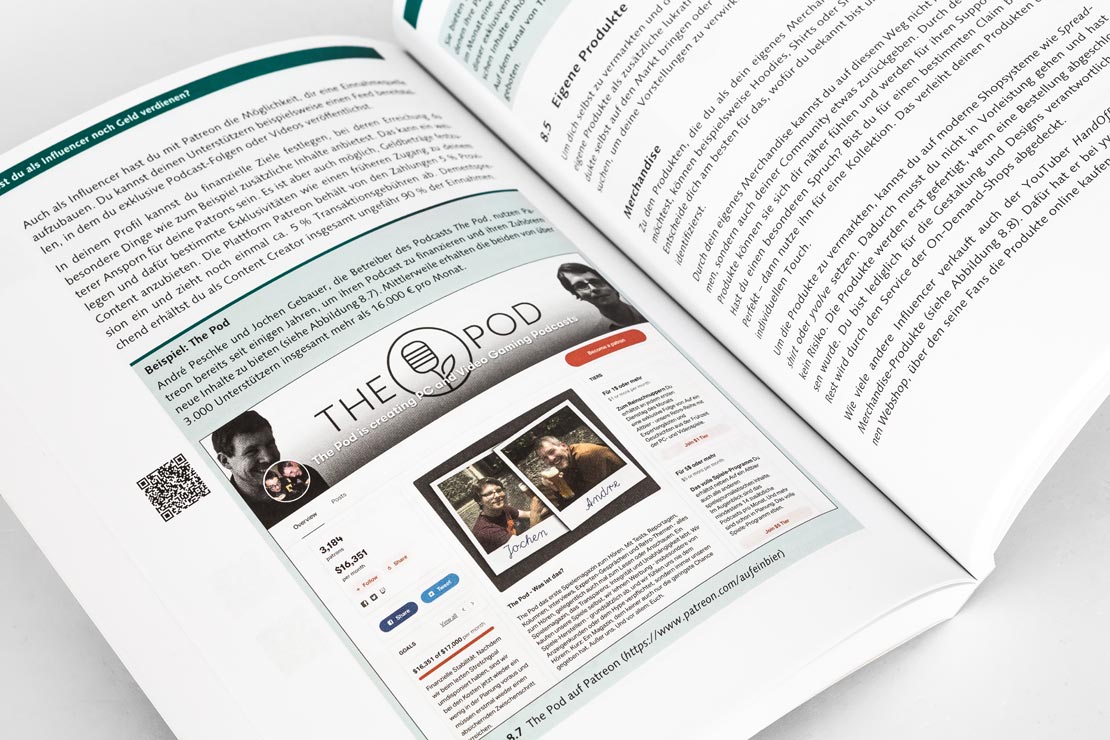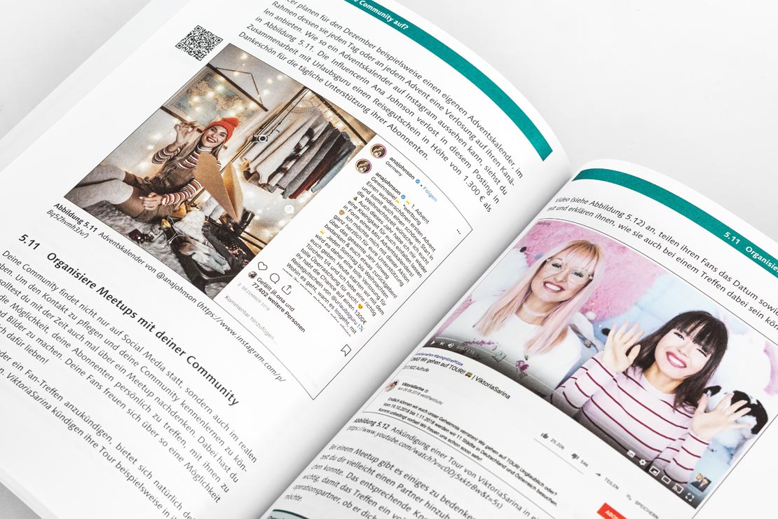 Danach geht es um die eigentliche Arbeit eines Influencers. Wie produziert und veröffentlicht man Inhalte? Wie baut man eine treue Community auf? Mit diesen und weiteren Fragen beschäftigen sich speziell die Kapitel 4 und 5.