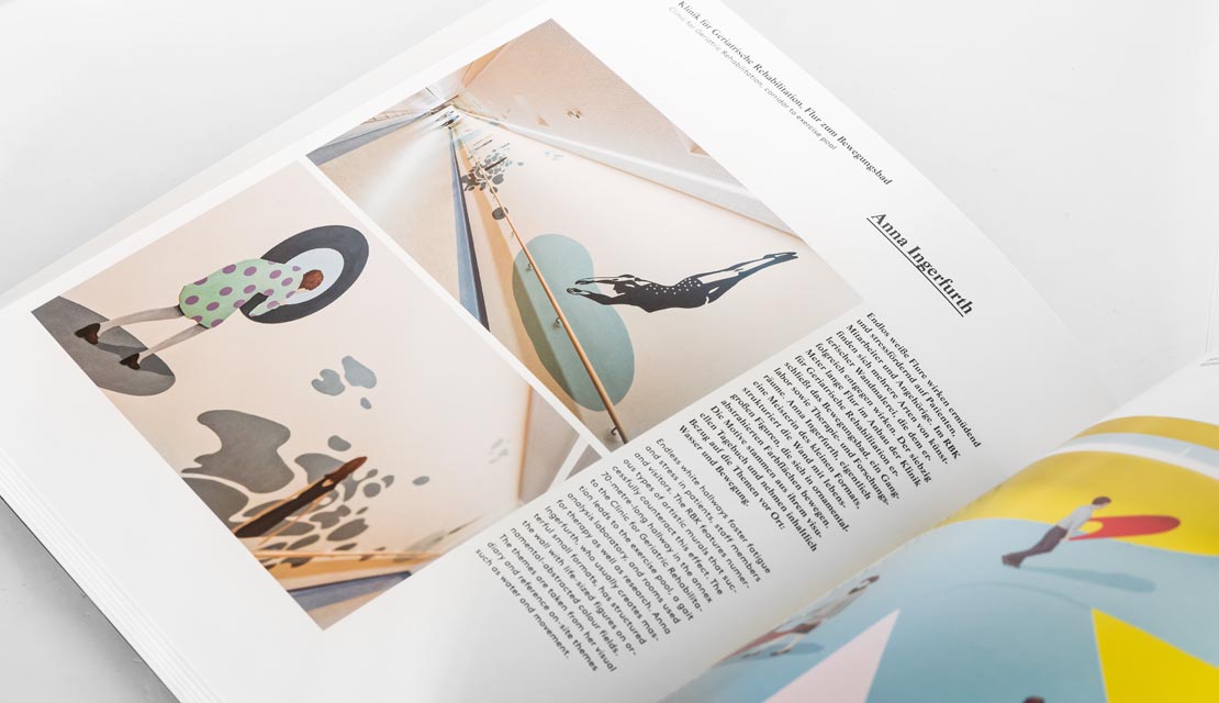 So findet man beispielsweise gestaltete Warte- und Durchgangsbereiche, die bewusst mit den psychologischen Effekten von Farben spielen oder Wandreliefs und Installationen, die beruhigend auf Patienten wirken sollen.