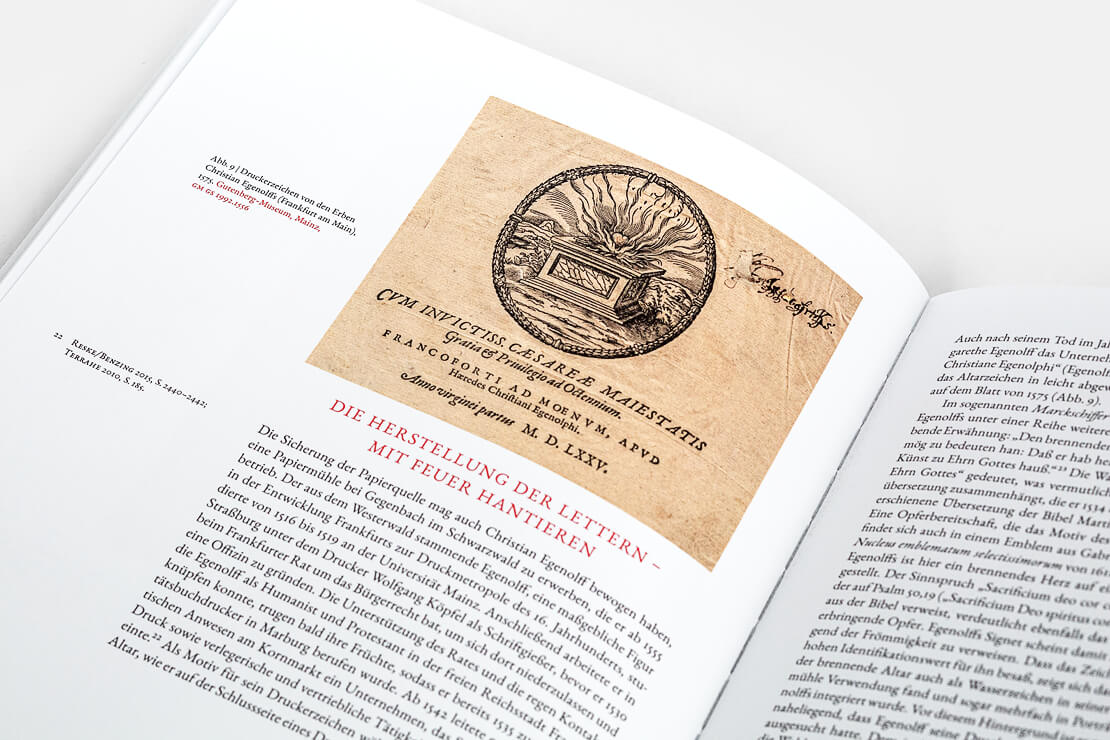 Neben der historischen Einordnung bietet das Buch konkrete Fallstudien, die den Bogen von der frühen Neuzeit bis in die Gegenwart schlagen – beispielsweise durch die Analyse der Entwicklung des Logos des Deutschen Kunstverlages. Die Publikation greift dabei auf teils bislang unbekannte Bestände des Gutenberg-Museums zurück.