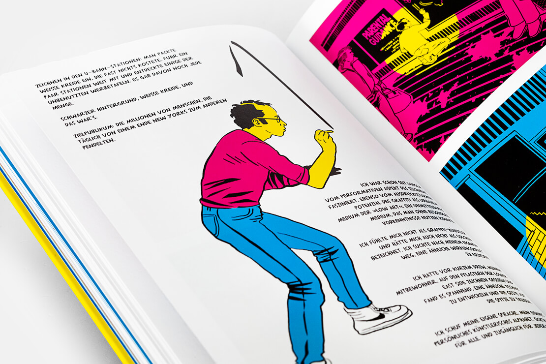 Paolo Parisi präsentiert die erste, komplett illustrierte Biografie über Keith Haring im New York der 1980er Jahre. Durch die Verwendung von nur drei Farben (Blau, Magenta und Gelb) wird das Leben und Schaffen der Pop-Art-Legende dargestellt.