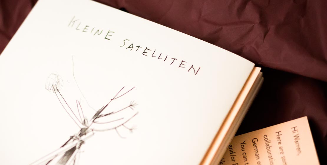 Für das Buchprojekt »Kleine Satelliten« schickte die deutsche Lyrikerin Lydia Daher ihre Verse auf eine abenteuerliche Reise. Die Originalgedichte flogen zum amerikanischen Comiczeichner Warren Craghead III. Der setzte die Worte in experimentelle Bleistiftzeichnungen um. Die daraus entstandene Publikation ist im Augsburger MaroVerlag erschienen.