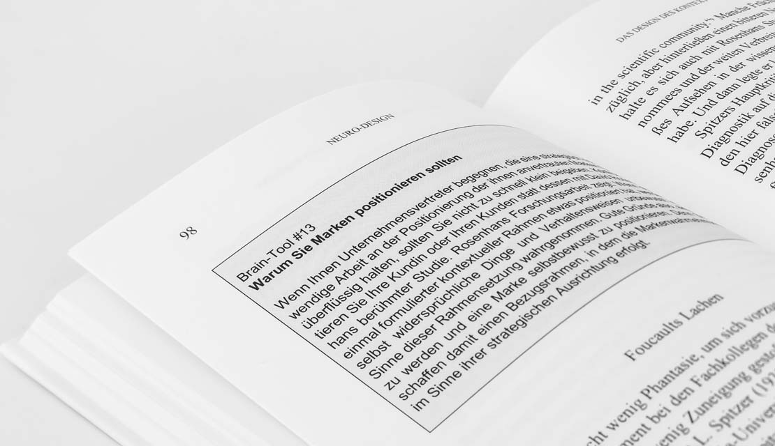 »Neuro-Design« ist, gemäß der Materie, ein eher textlastiges Buch, das mit wenigen Illustrationen auskommt. Hier geht es um den Inhalt, der entdeckt werden möchte. Das Ganze liest sich jedoch recht flüssig. Obwohl der akademische Hintergrund natürlich vorhanden ist, hat es der Autor dennoch geschafft, die Themen unterhaltsam aufzubereiten. Somit wird das Buch für Kreative interessant, die einen Blick auf die psychologischen Aspekte in Design und Marketing werfen möchten.