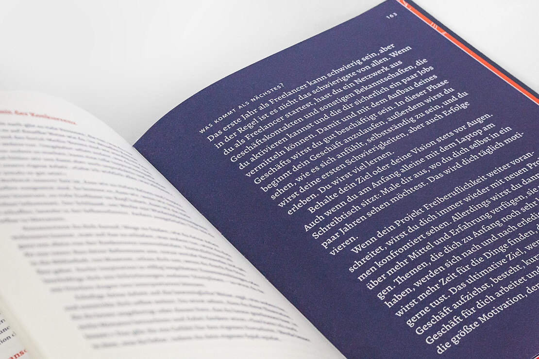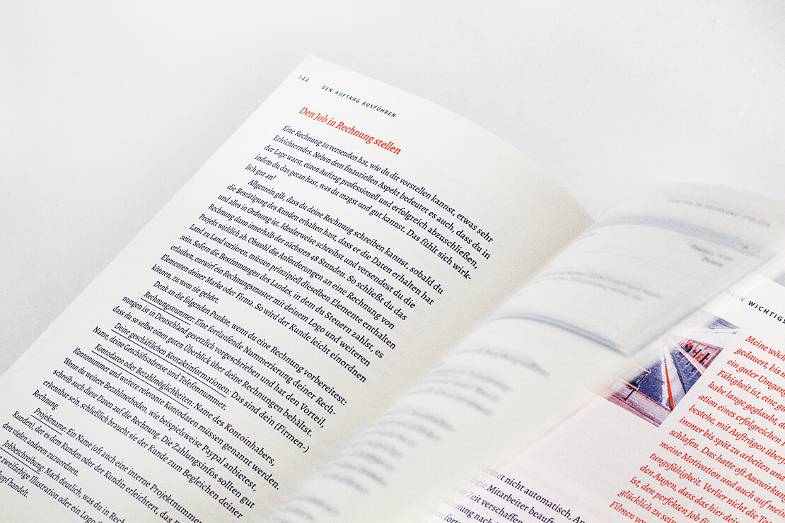 Außerdem geht es um den Arbeitsalltag als Freiberufler, sich selbst zu präsentieren, ums Ausführen von Aufträgen sowie um wichtige Themen wie beispielsweise Finanzmanagement, Angebote, Briefings und weitere Bereiche. Somit erhält man einen realistischen Überblick über das, was auf Kreative nach der Selbständigkeit alles zukommt.