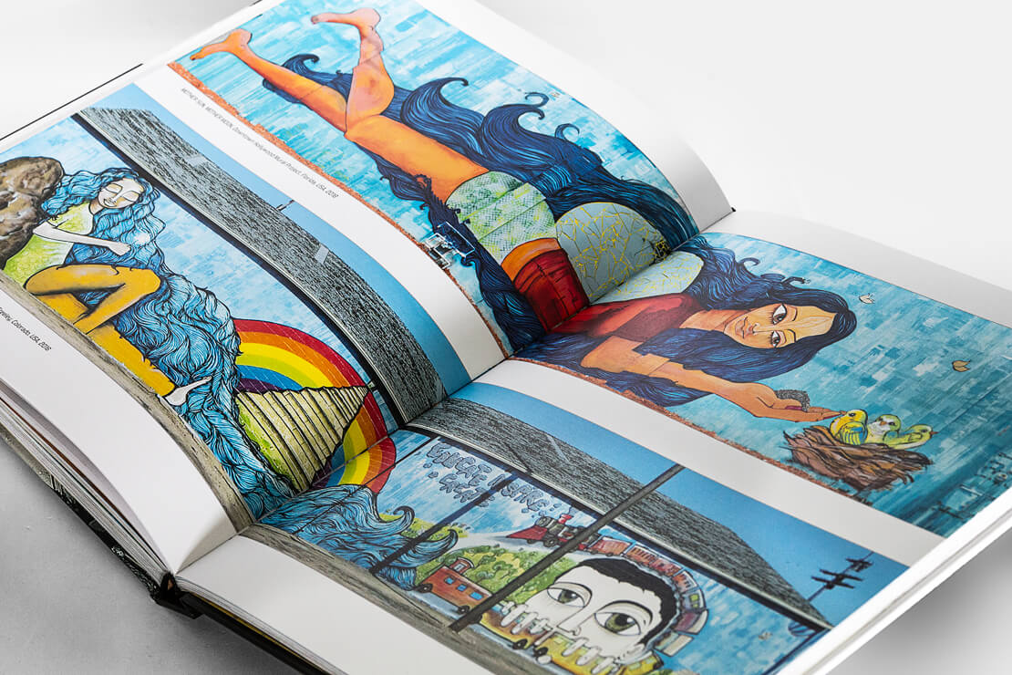 Natürlich spricht die Kunst auch für sich selbst: Der Band aus dem Prestel Verlag setzt die auffälligen Werke gekonnt in Szene und zeigt mit großformatigen Abbildungen, wie kreativ die weibliche Street Art-Szene ist. Die vorgestellten Künstlerinnen behandeln Themen wie Rassismus, Feminismus, Body Shaming, Körperbilder oder Umweltfragen und bringen diese kreativ auf Wänden, Mauern, Gebäuden, Wegen, Brücken etc. zum Ausdruck.