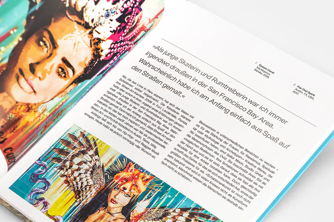 »Street Art von Frauen« ist im Schweizer Midas Verlag erschienen und hat einen Umfang von 256 Seiten (Hardcover). Das Buch kann für 34 Euro im Handel erworben werden.