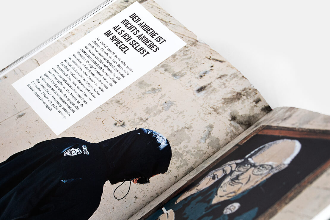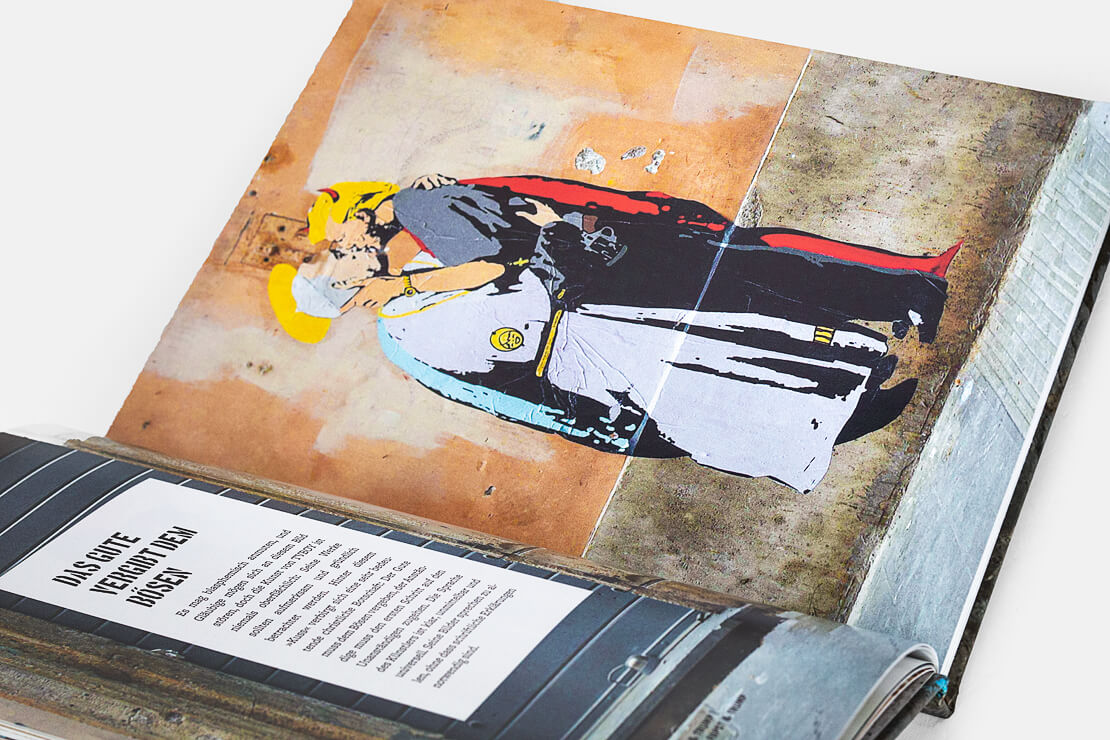 Die 160 Seiten umfassende Publikation stellt die Arbeiten des Kreativen mithilfe von großformatigen Abbildungen dar. Außerdem erhält man weitere Informationen zur Entstehung der Wandbilder sowie weitere Details zu den einzelnen Werken.
