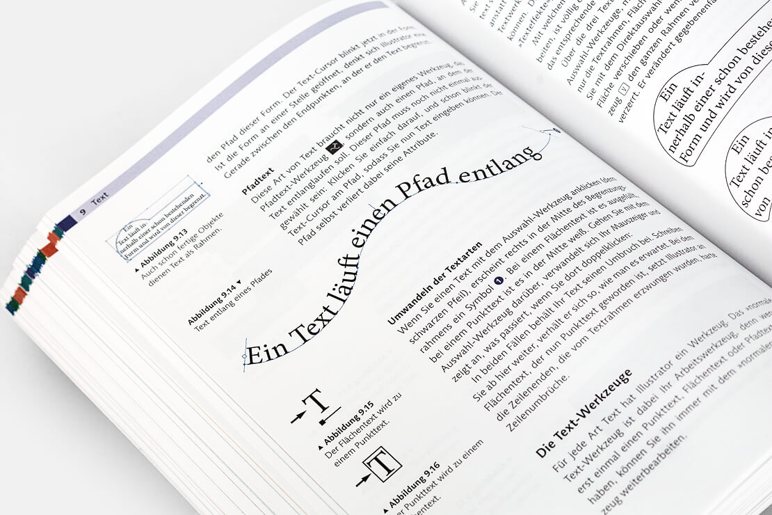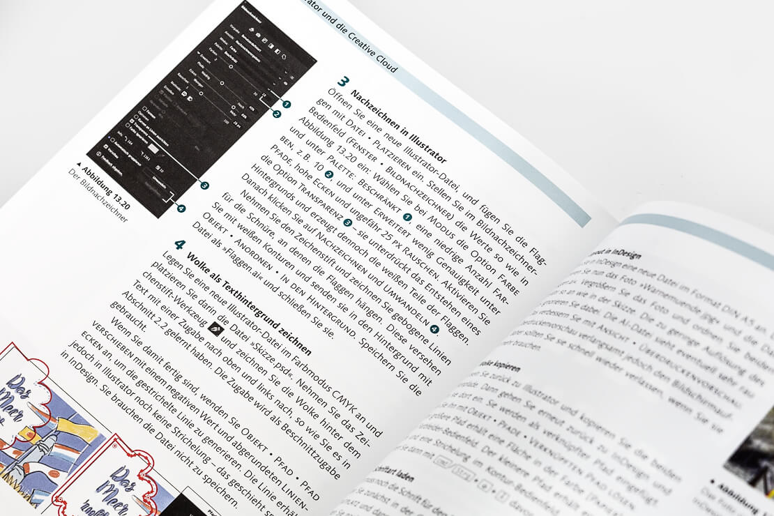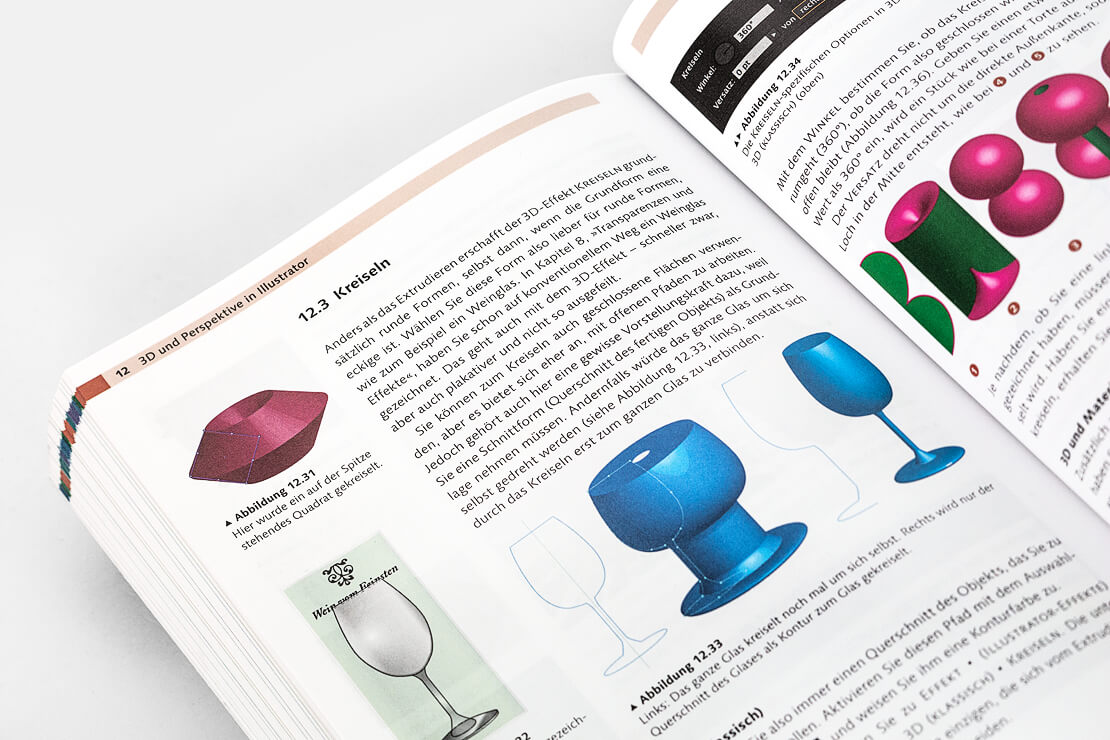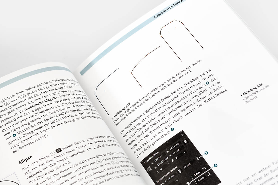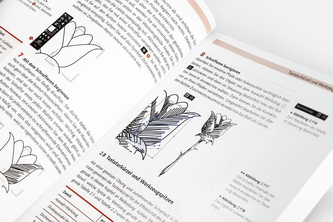 Auf 488 Seiten im handlichen Format von 17,2 × 23 cm führt Kai Flemming in die Arbeitsoberfläche und alle Werkzeuge ein, zeigt den Umgang mit Pfaden, Ebenen und dem Aussehen-Panel und erläutert, wie sich Objekte erstellen, transformieren, ausrichten und verzerren lassen.