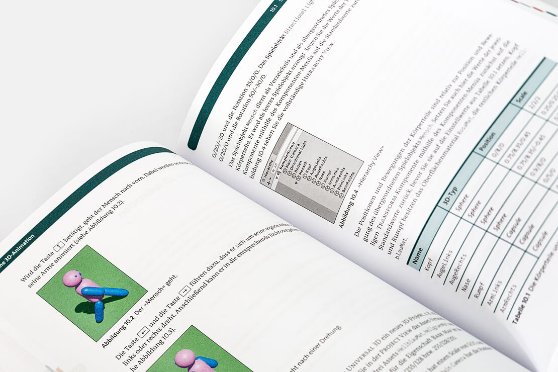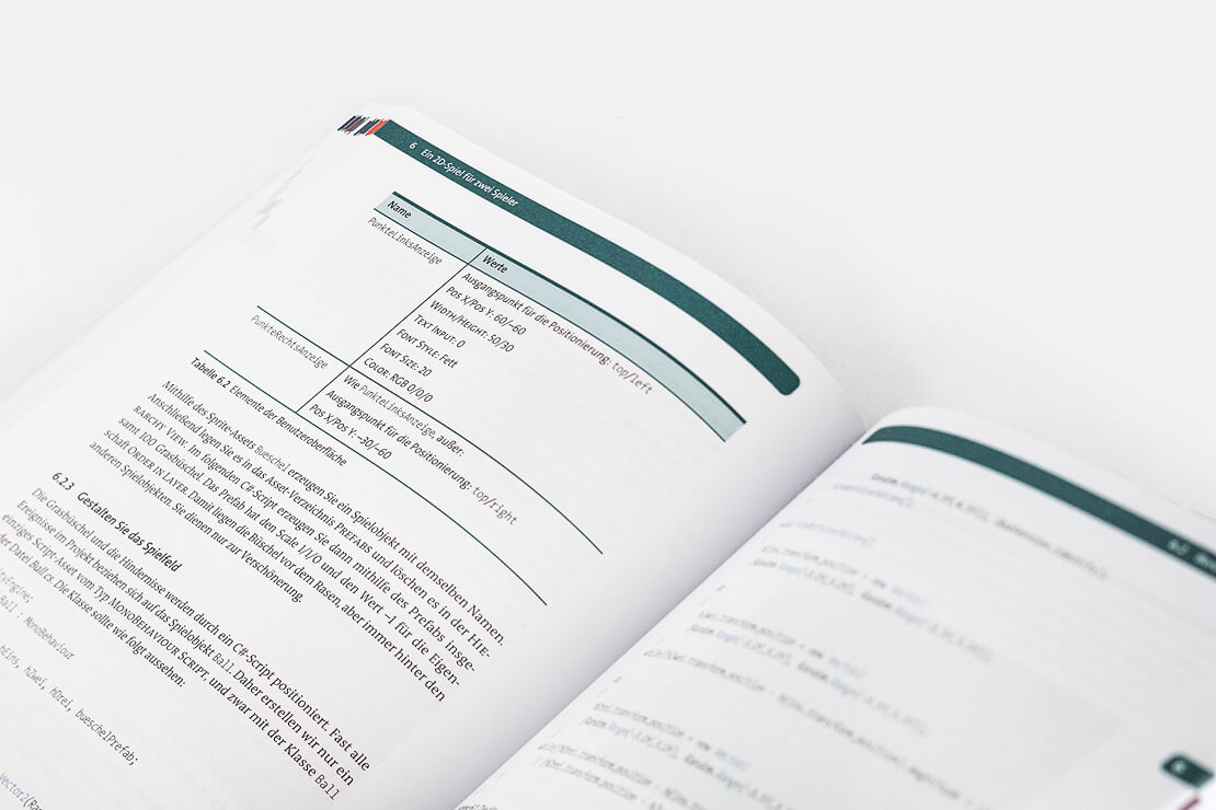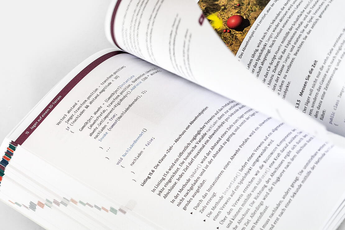Seiten aus dem Buch über Unity Spiele entwickeln und programmieren
