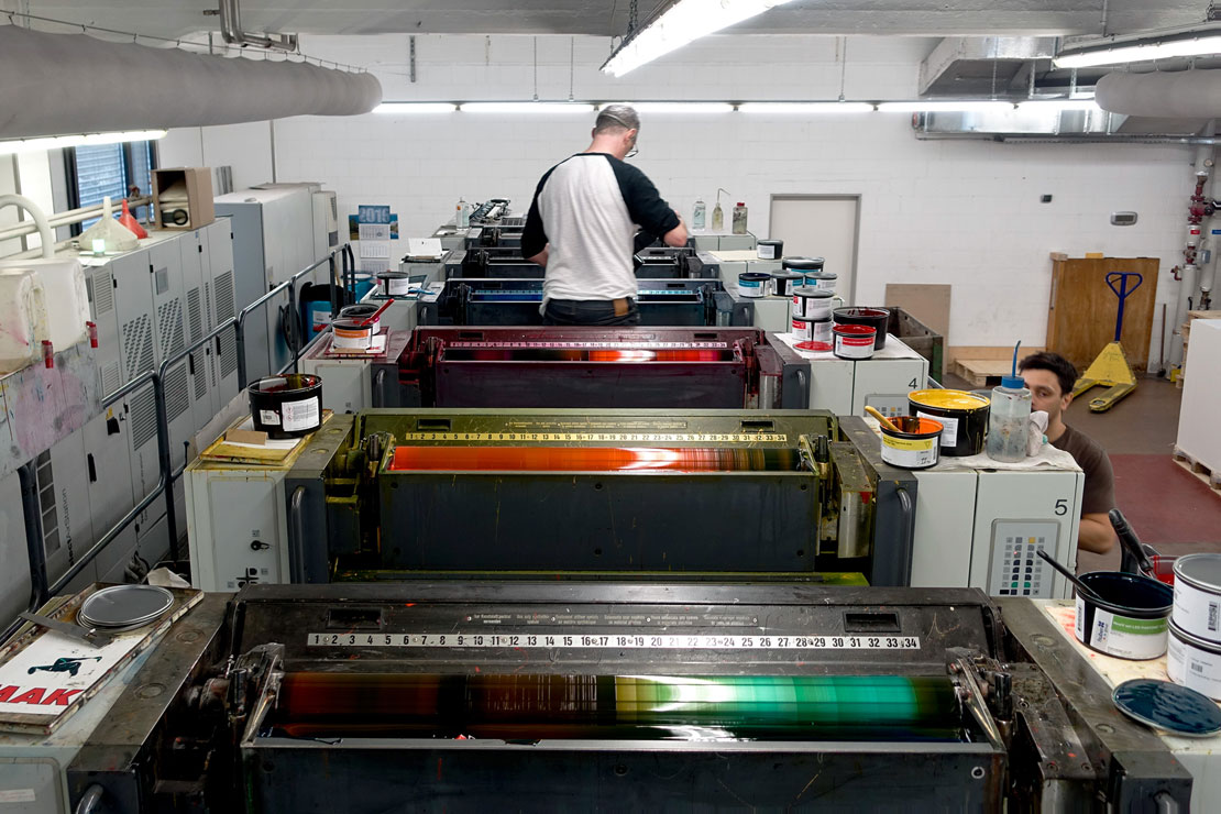Partner für diese Produktion waren die J. E. Wolfensberger AG, der Feinstpapier-Spezialist Römerturm sowie der Designer Marcus Kraft. Möglich wurde die Vielfalt der Cover durch handwerkliche Eingriffe des Designers während des Druckprozesses: Vier unterschiedliche Motive wurden zunächst konventionell belichtet, jedoch während des Druckens stetig bearbeitet. Mittels Veränderung der Farbwahl, -führung und -mengen, Wasserspritzern und Kratzern entstanden reizvolle Varianten der geometrischen Formen.
