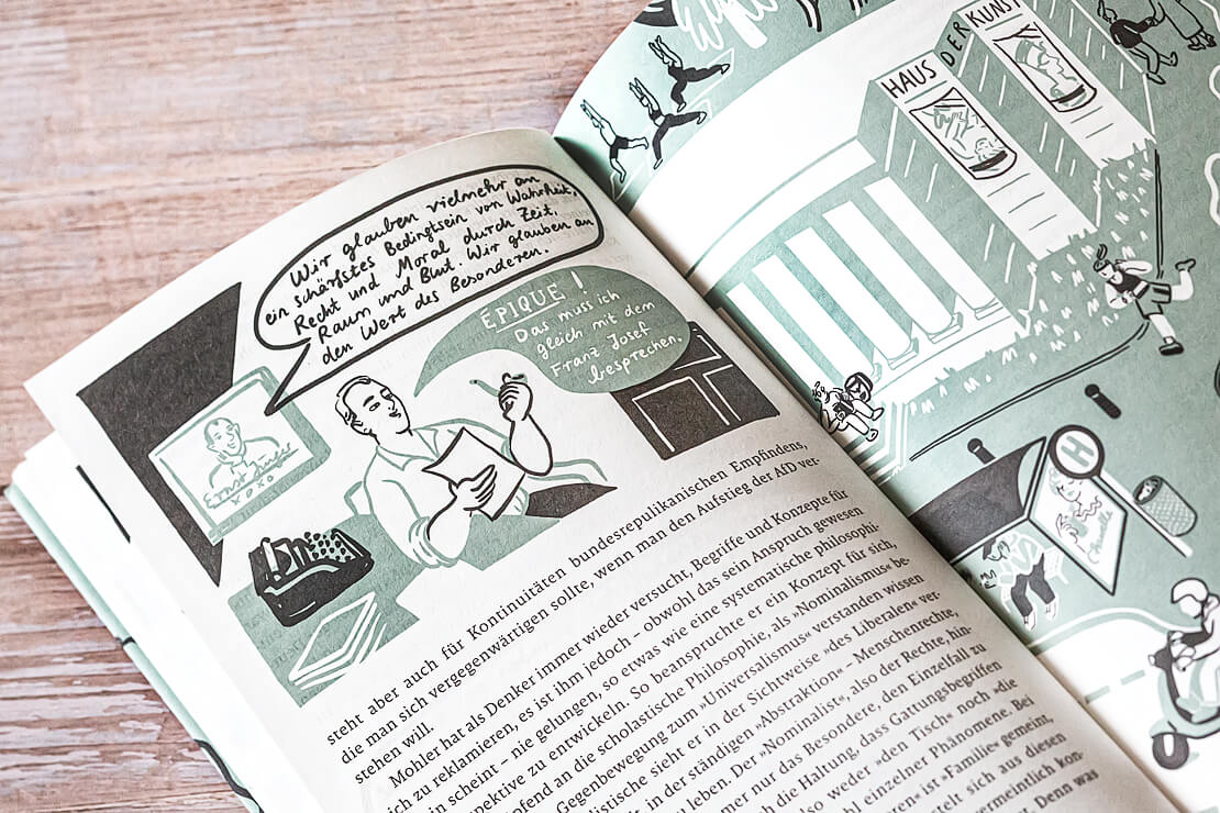 Ergänzt wird der Text durch Illustrationen in fünf Sonderfarben und ein beiliegendes Plakat von Josephin Ritschel.