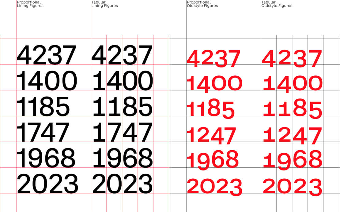 Die Harmonisierung umfasst außerdem feiner abgestufte Zwischengewichte. Neu sind unter anderem die Schnitte »SemiLight«, »SemiBold«, »ExtraBold« sowie die »ExtraBlack-Extrem«. Außerdem gibt es dezente Anpassungen bei bestehenden Strichstärken. Zudem sind alle Varianten über die alles umfassenden Variable-Fonts erreichbar.