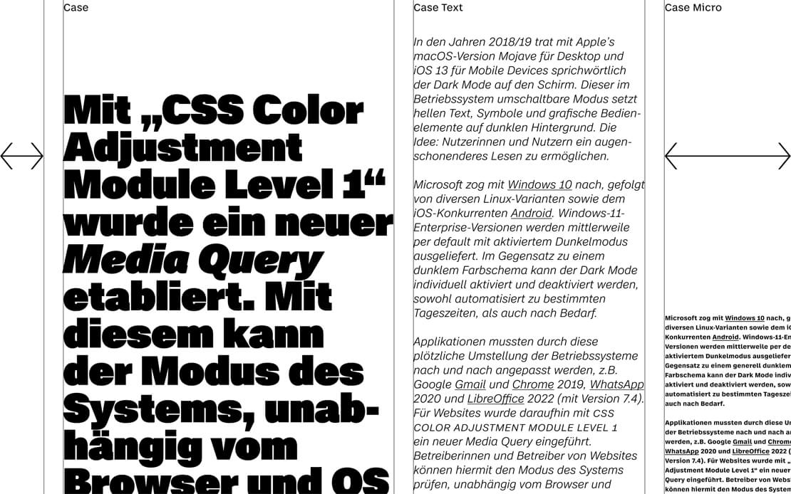 Erik Spiekermann, Anja Meiners und Ralph du Carrois haben die Schriftfamilie »Case« von Grund auf überarbeitet. Die Anzahl der Fonts und die Zeichen wurden im Zuge des Updates verdoppelt.