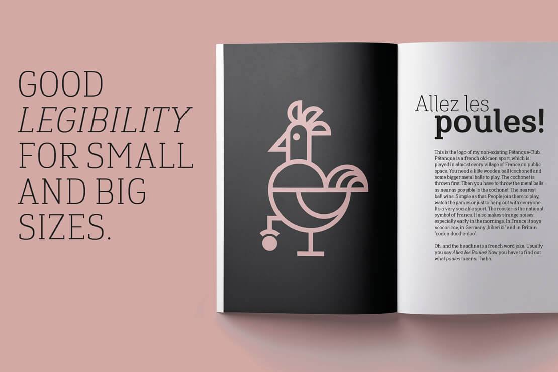 Aufgrund ihrer Charakterstärke ist »Finador Slab« geeignet für Editorial, Branding, Packaging und markante Logos und bietet zudem in der Anwendung viele weitere Möglichkeiten.