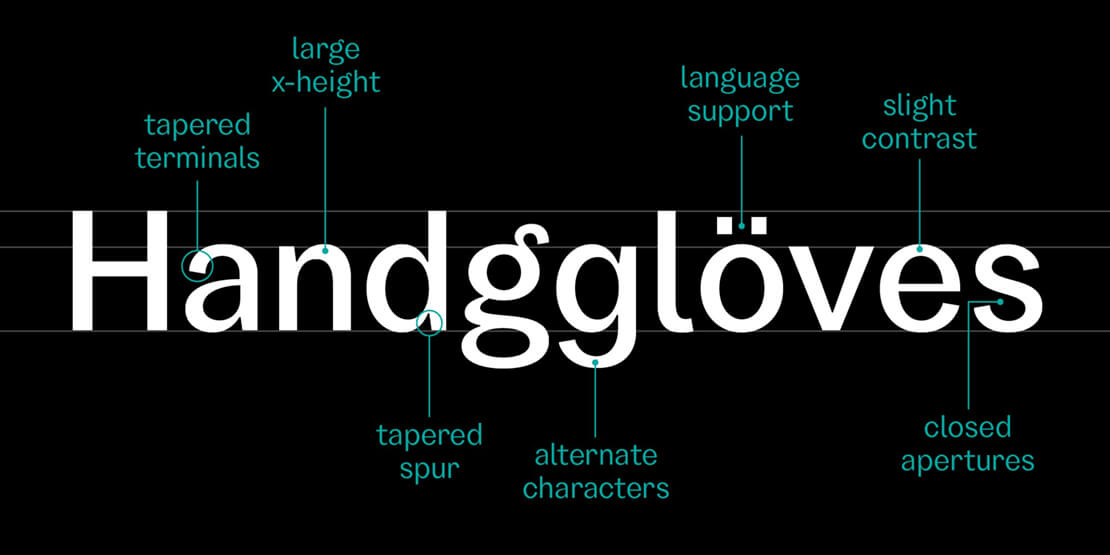 Die dünneren und dickeren Gewichte sollen sich insbesondere für starke Headlines eignen, während die mittleren Gewichte eher für typographische Herausforderungen und Fließtexte geschaffen sind. Daher lässt sich die Schrift sowohl zurückhaltend als auch expressiv einsetzen.