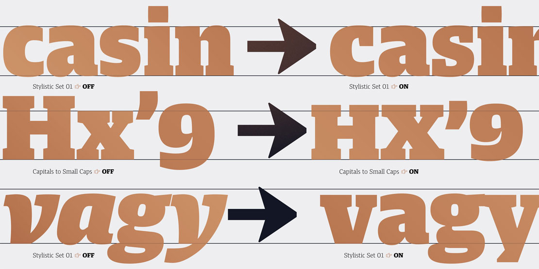 Harrison Serif bietet ein breites Spektrum an Gewichten – von hauchfeiner Haarlinie bis zur dunkelschwarzen Ultra sowie kursive Schnitte. Durch einen Mix aus echter Kursiven und schlicht geneigtem Winkel verbinden sie handschriftlich-verspielte, expressive Formen mit der Nüchternheit einer Oblique.
