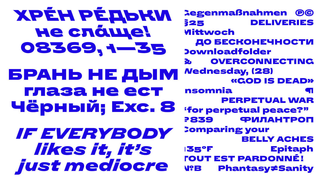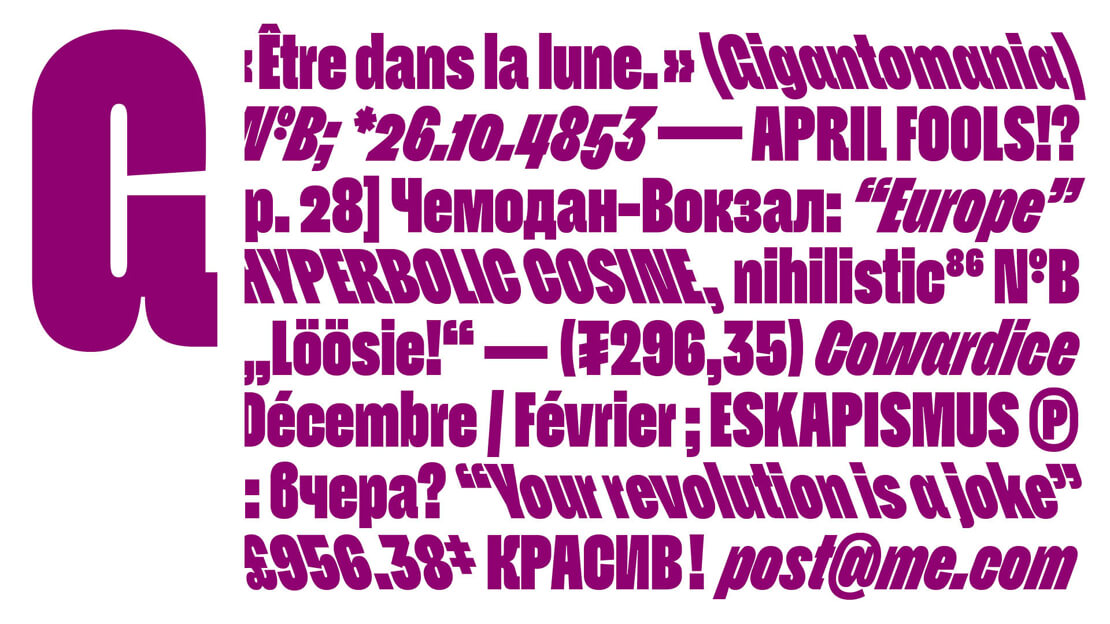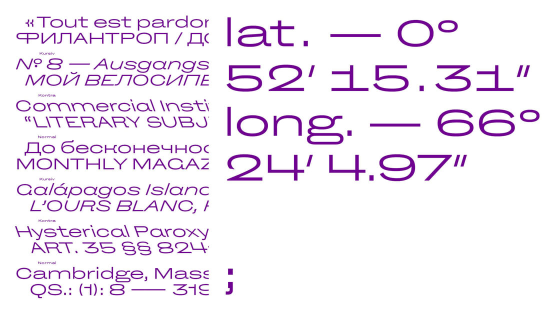 »Norbert« denkt in Extremen: Schmal oder Breit, Kursiv oder Kontra. Dabei verzichtet die Schriftfamilie absichtlich auf eine reguläre Weite oder interpolierte Zwischengewichte.