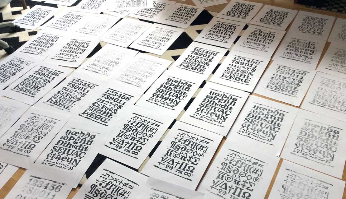 Inspiriert von den handgemachten Drucken seiner Frau entschied sich Felix Braden einen kompletten Schriftsatz in Holz zu schneiden und manuell zu drucken. Er begann bei einer seiner Lieblingsschriften – Century Schoolbock – den Wechselstrich zu reduzieren, um auf dieser Basis eine Clarendon zu zeichnen. Ein leichter und ein fetter Schnitt wurden digitalisiert, um daraus einen halbfetten Schnitt zu interpolieren und in Holz zu schneiden.