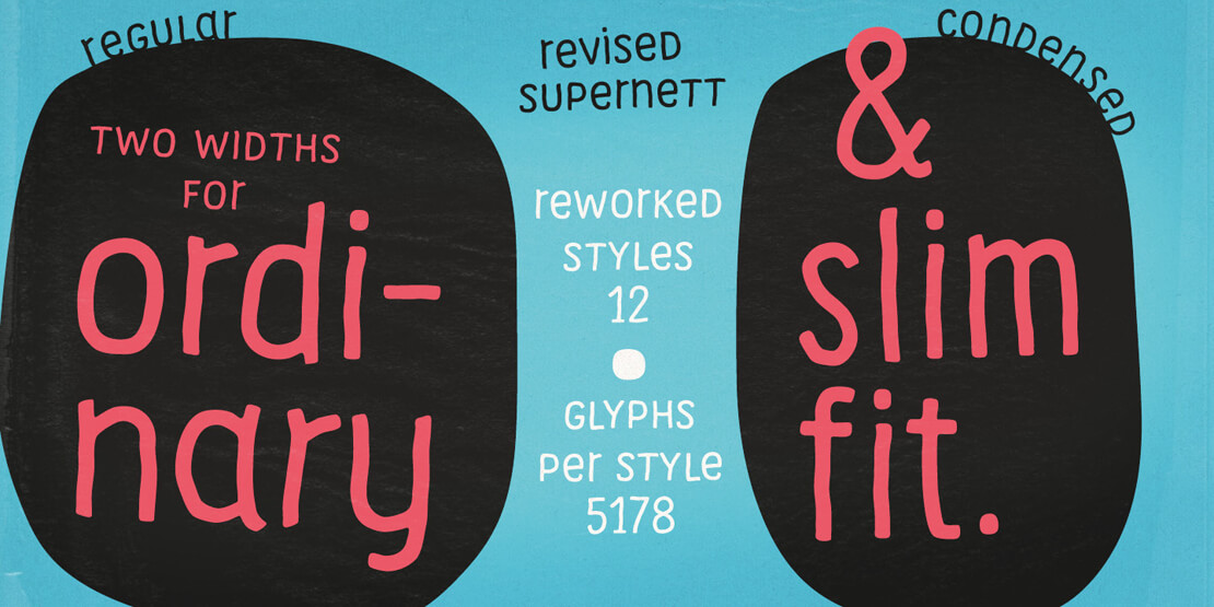Zur Einführung der stark überarbeiteten 2019er Version gibt es alle 12 Schriften von »Supernett« im Paketpreis für 22,80 Euro bei MyFonts* zu erwerben (entspricht einem Rabatt von 70%). Ein regulärer Schnitt kostet 16,99 Euro.