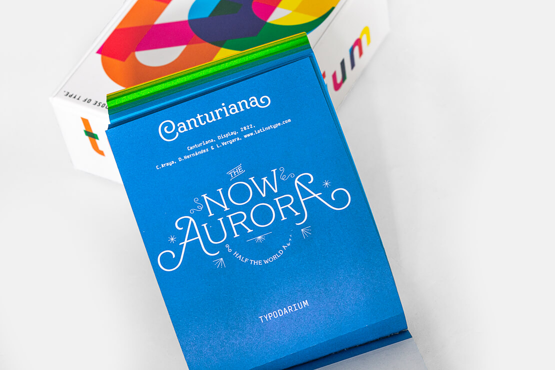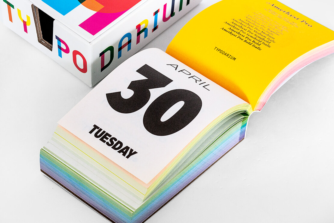 Das Format des Typodariums bleibt mit 8,5 x 12 cm auch für die 2024er Ausgabe unverändert. Jeder Kalender kommt in einer soliden Sammelbox, die sich zum Aufbewahren der abgerissenen Kalenderseiten eignet. So kann das »Typodarium 2024« auch während oder nach dem entsprechenden Jahr noch als persönliches Musterbuch mit eigenen Schriften-Highlights dienen.